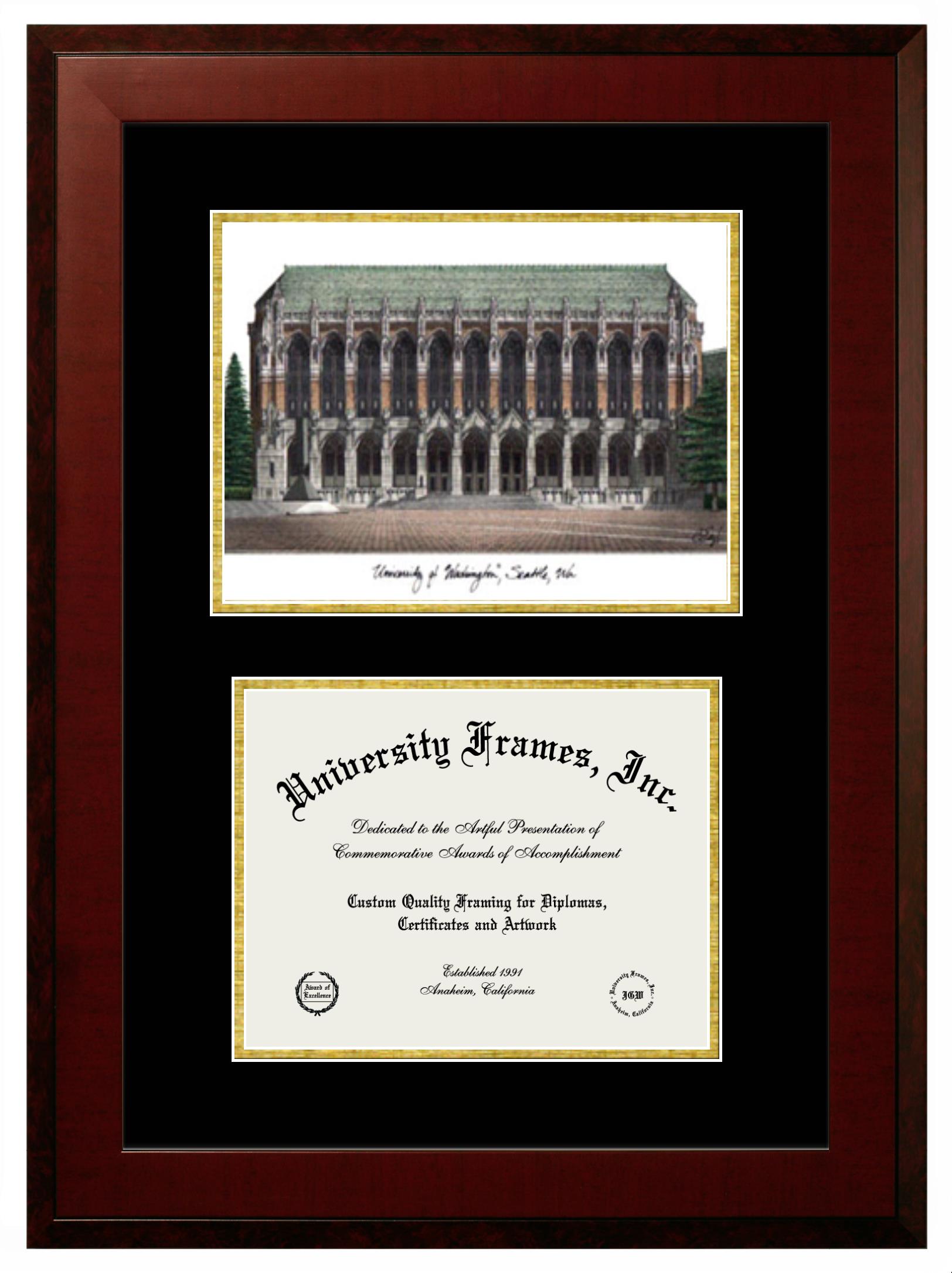 University of Washington diploma frames and degree frames are the perfect graduation gifts for recent grads, or anyone who wants to preserve and display their hard-earned accomplishments. Our custom diploma frames are specifically made with the official University of Washington seal and are handcrafted to meet high-quality standards. We guarantee that you will love our graduation frames. Start customizing your frame now!