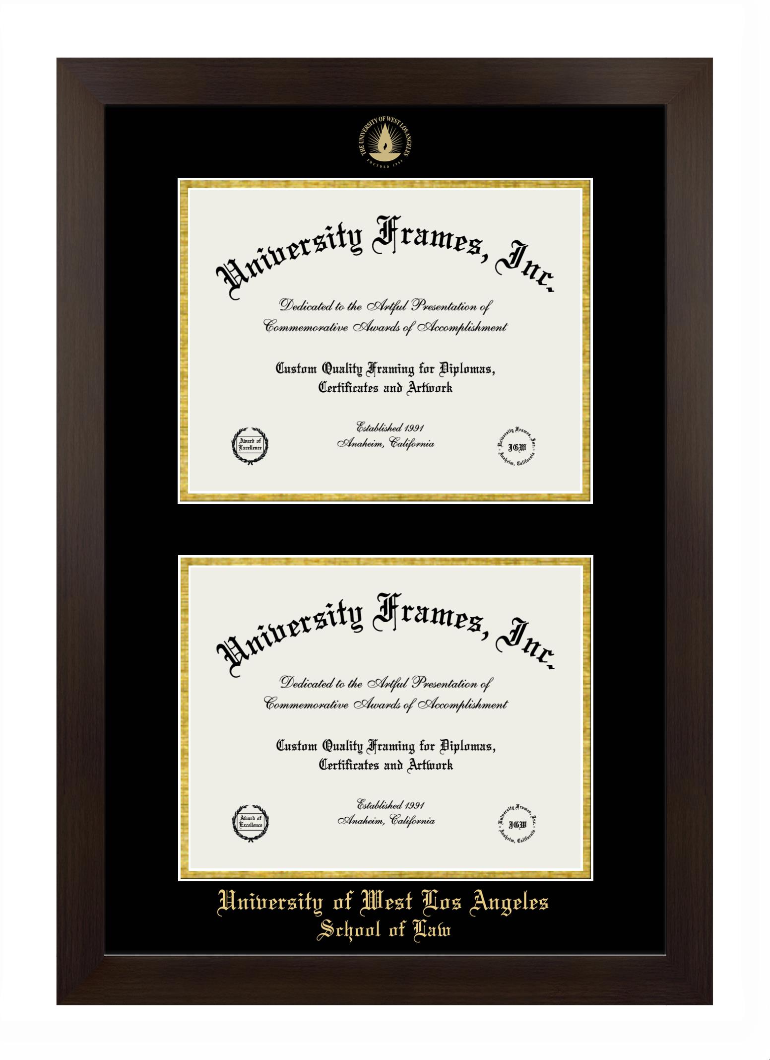 University of West Los Angeles School of Law diploma frames and degree frames are the perfect graduation gifts for recent grads, or anyone who wants to preserve and display their hard-earned accomplishments. Our custom diploma frames are specifically made with the official University of West Los Angeles School of Law seal and are handcrafted to meet high-quality standards. We guarantee that you will love our graduation frames. Start customizing your frame now!