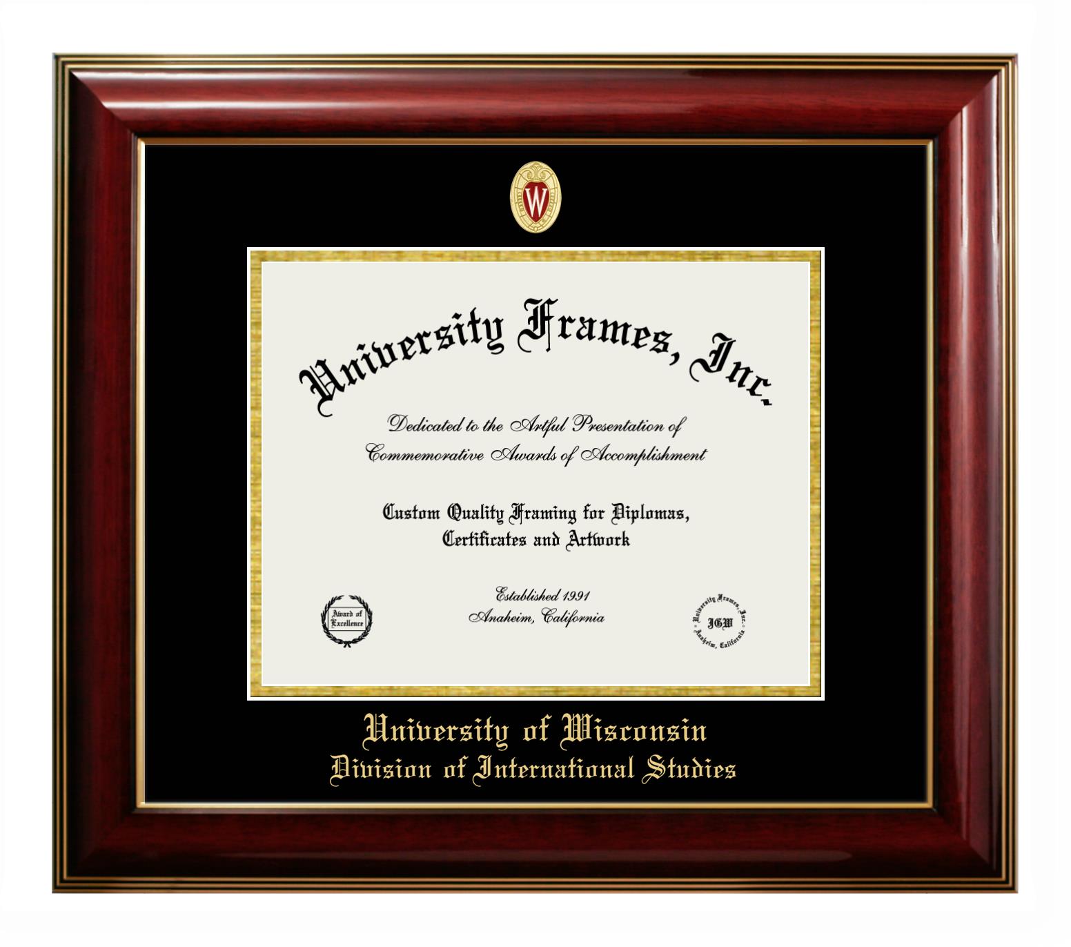 University of Wisconsin (Madison) Division of International Studies diploma frames and degree frames are the perfect graduation gifts for recent grads, or anyone who wants to preserve and display their hard-earned accomplishments. Our custom diploma frames are specifically made with the official University of Wisconsin (Madison) Division of International Studies seal and are handcrafted to meet high-quality standards. We guarantee that you will love our graduation frames. Start customizing your frame now!