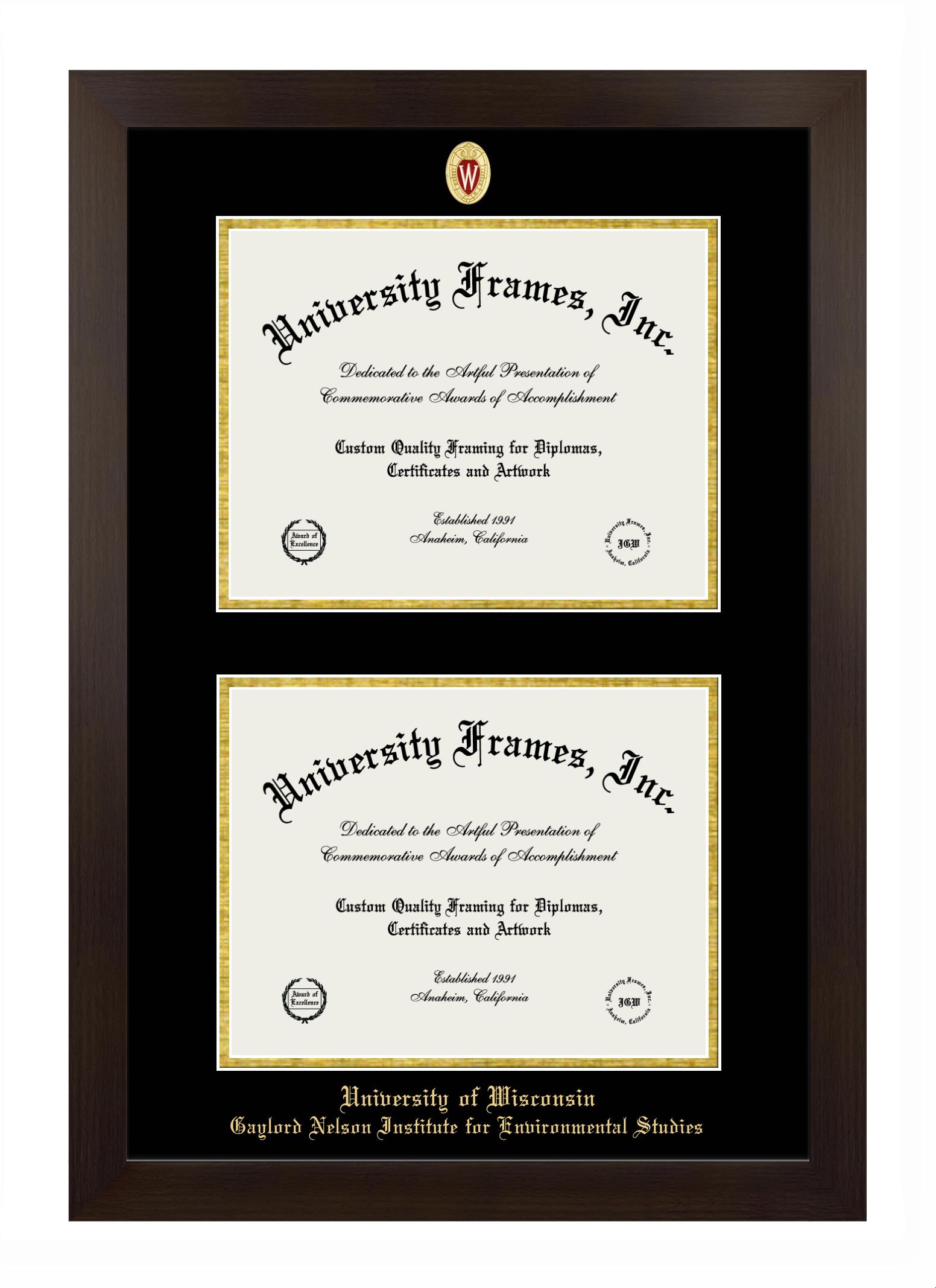 University of Wisconsin (Madison) Gaylord Nelson Institute for Environmental Studies diploma frames and degree frames are the perfect graduation gifts for recent grads, or anyone who wants to preserve and display their hard-earned accomplishments. Our custom diploma frames are specifically made with the official University of Wisconsin (Madison) Gaylord Nelson Institute for Environmental Studies seal and are handcrafted to meet high-quality standards. We guarantee that you will love our graduation frames. Start customizing your frame now!