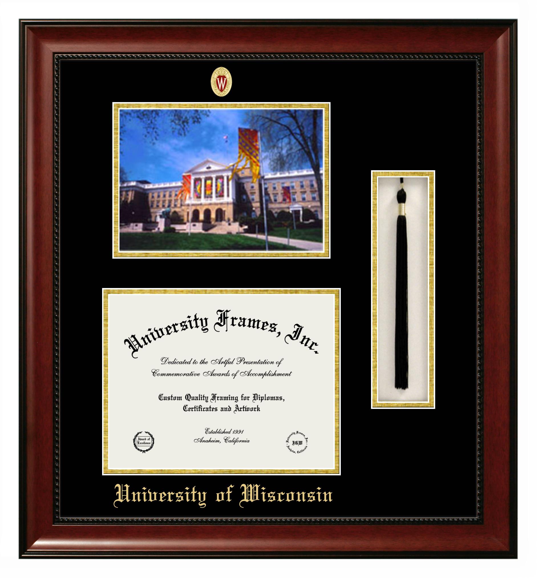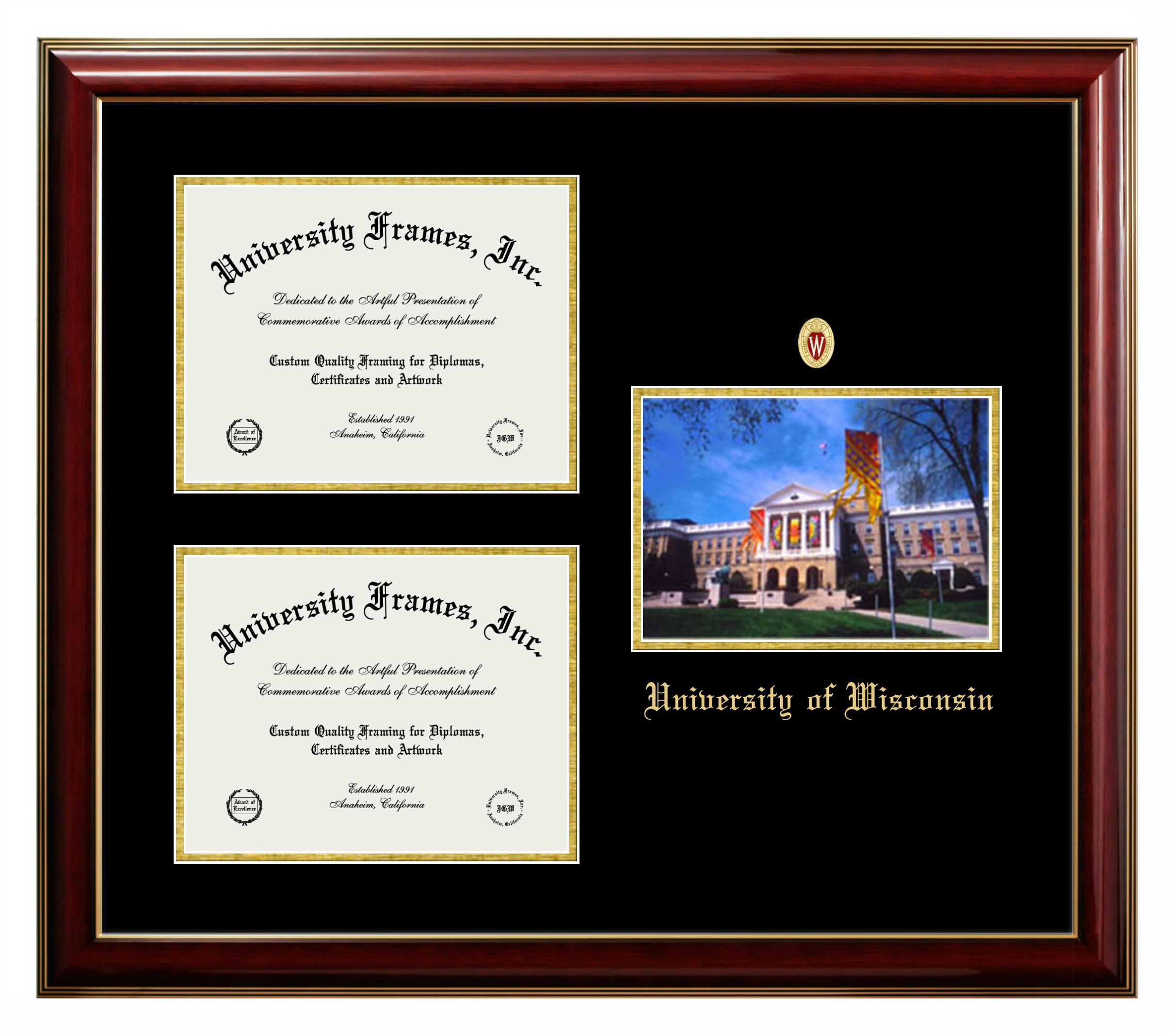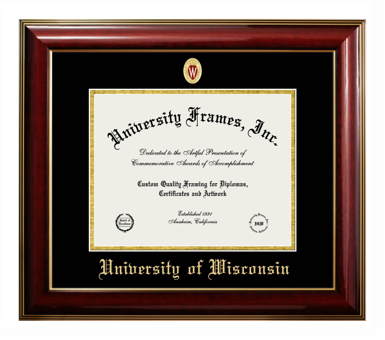 University of Wisconsin (Madison) diploma frames and degree frames are the perfect graduation gifts for recent grads, or anyone who wants to preserve and display their hard-earned accomplishments. Our custom diploma frames are specifically made with the official University of Wisconsin (Madison) seal and are handcrafted to meet high-quality standards. We guarantee that you will love our graduation frames. Start customizing your frame now!