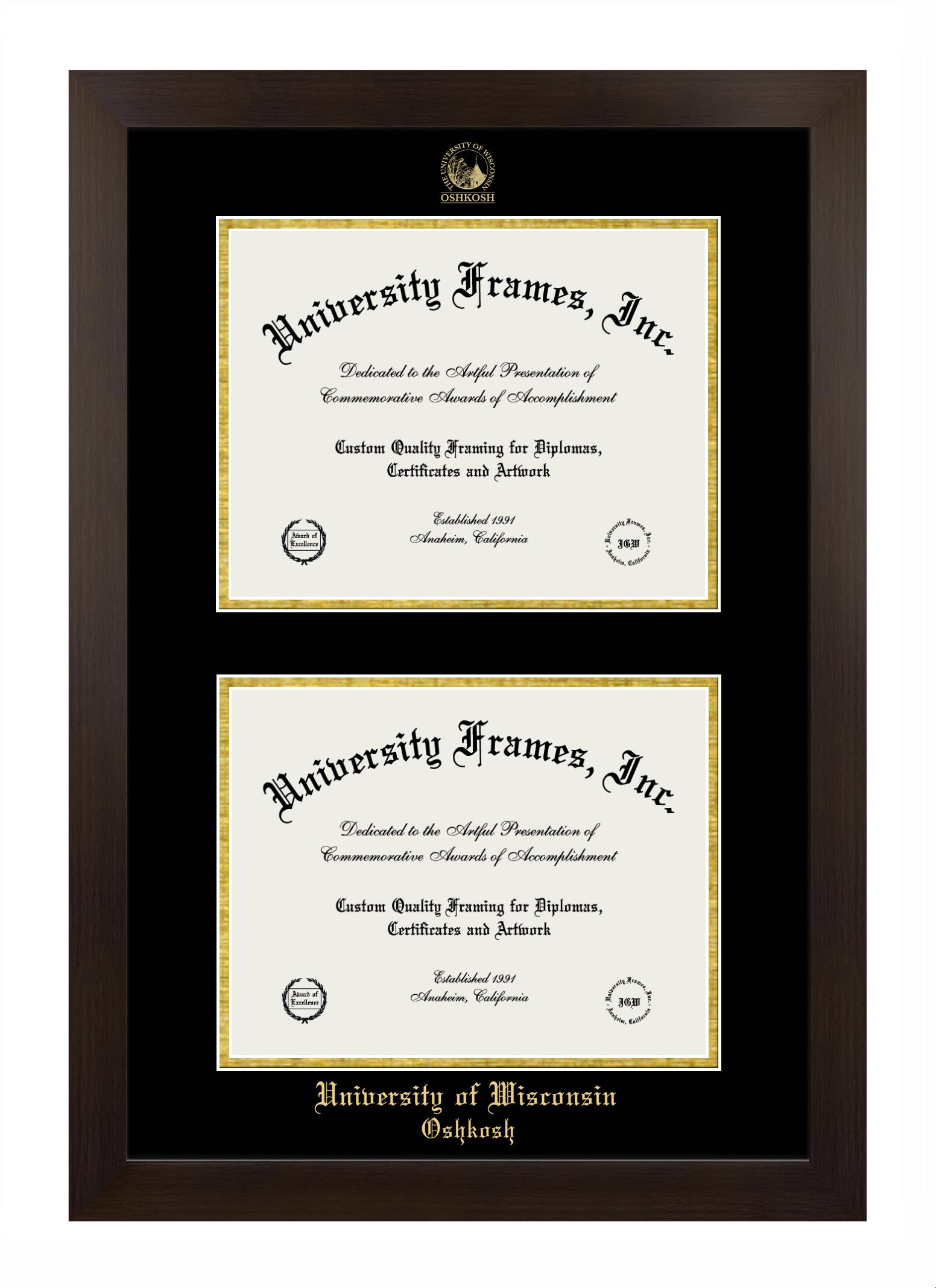 University of Wisconsin Oshkosh diploma frames and degree frames are the perfect graduation gifts for recent grads, or anyone who wants to preserve and display their hard-earned accomplishments. Our custom diploma frames are specifically made with the official University of Wisconsin Oshkosh seal and are handcrafted to meet high-quality standards. We guarantee that you will love our graduation frames. Start customizing your frame now!