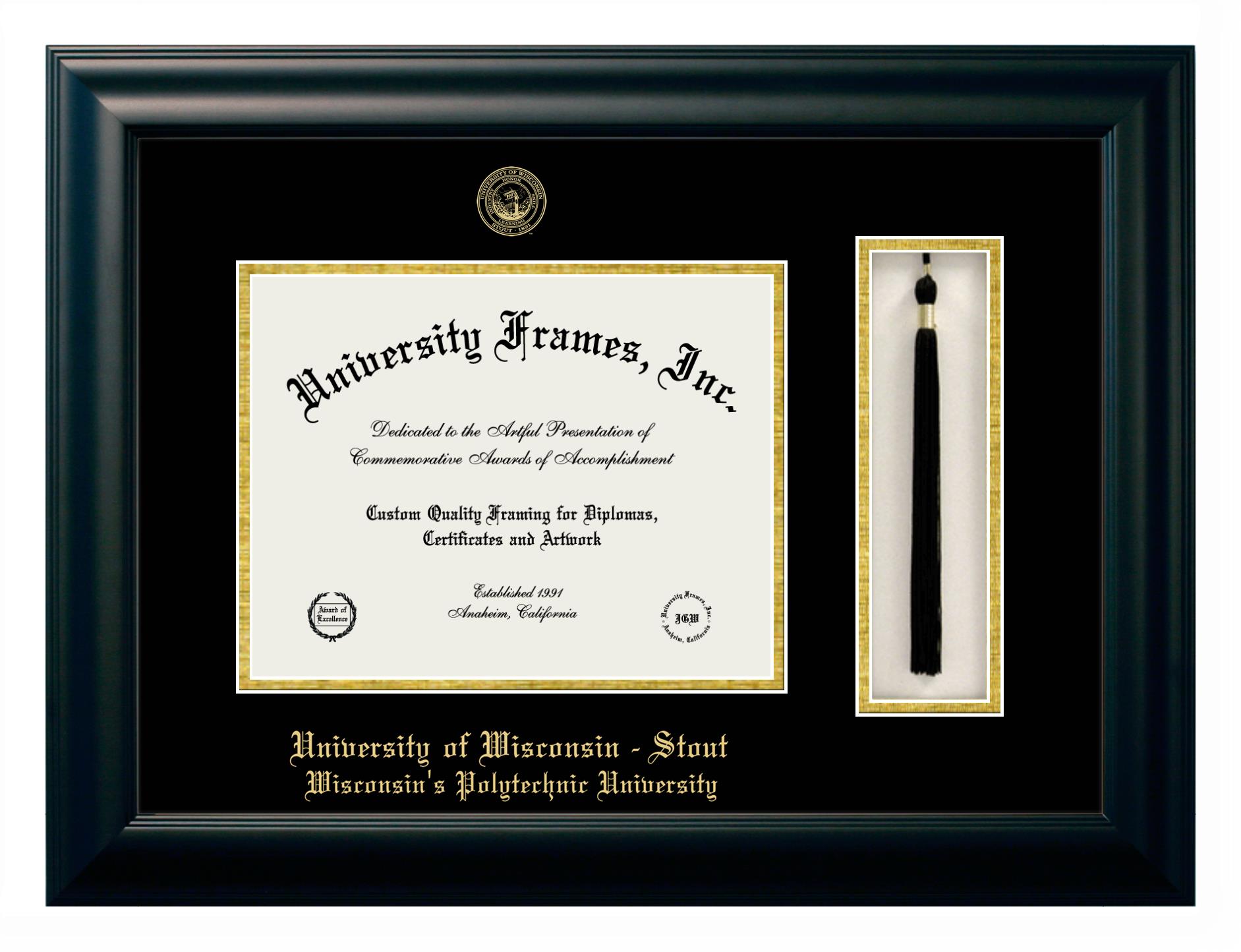 University of Wisconsin - Stout Wisconsin's Polytechnic University diploma frames and degree frames are the perfect graduation gifts for recent grads, or anyone who wants to preserve and display their hard-earned accomplishments. Our custom diploma frames are specifically made with the official University of Wisconsin - Stout Wisconsin's Polytechnic University seal and are handcrafted to meet high-quality standards. We guarantee that you will love our graduation frames. Start customizing your frame now!