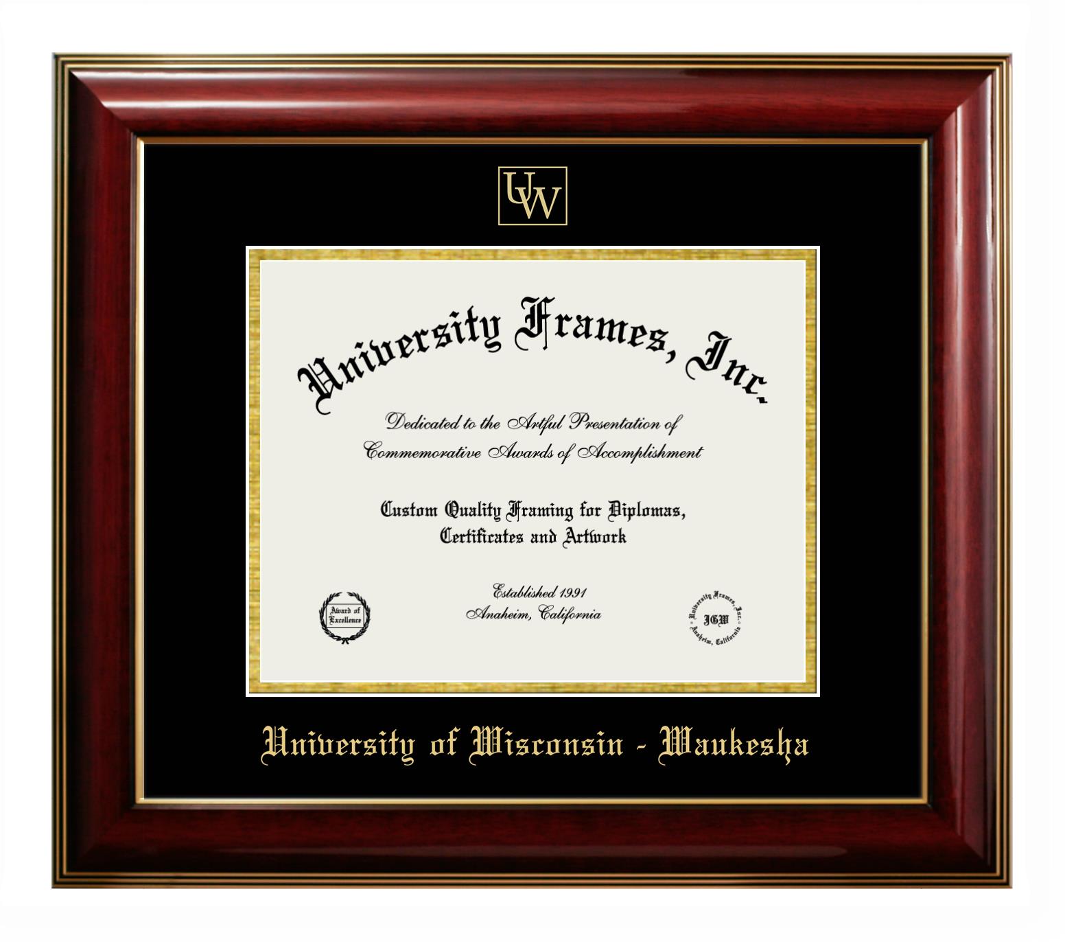 University of Wisconsin - Waukesha diploma frames and degree frames are the perfect graduation gifts for recent grads, or anyone who wants to preserve and display their hard-earned accomplishments. Our custom diploma frames are specifically made with the official University of Wisconsin - Waukesha seal and are handcrafted to meet high-quality standards. We guarantee that you will love our graduation frames. Start customizing your frame now!