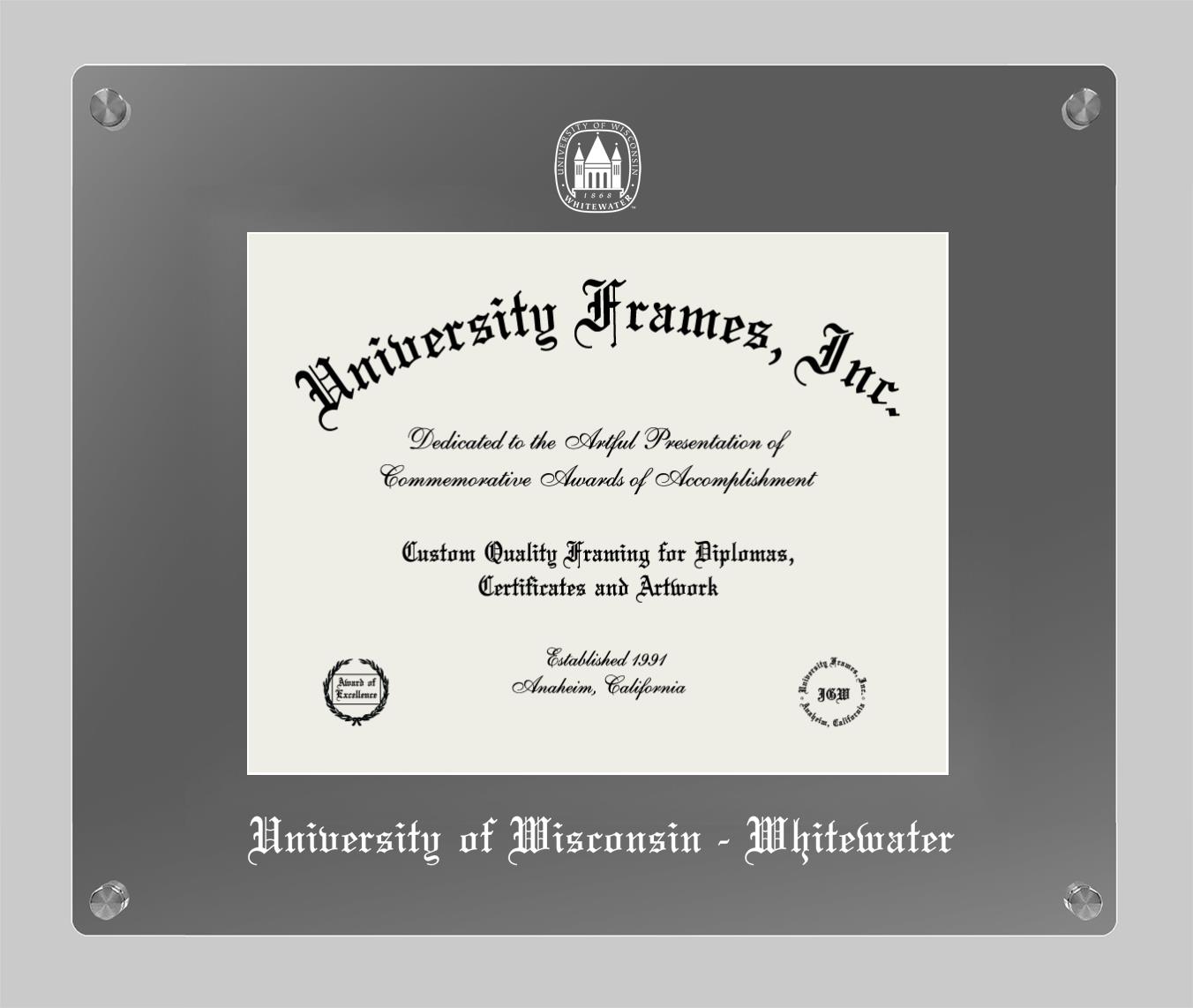University of Wisconsin - Whitewater diploma frames and degree frames are the perfect graduation gifts for recent grads, or anyone who wants to preserve and display their hard-earned accomplishments. Our custom diploma frames are specifically made with the official University of Wisconsin - Whitewater seal and are handcrafted to meet high-quality standards. We guarantee that you will love our graduation frames. Start customizing your frame now!