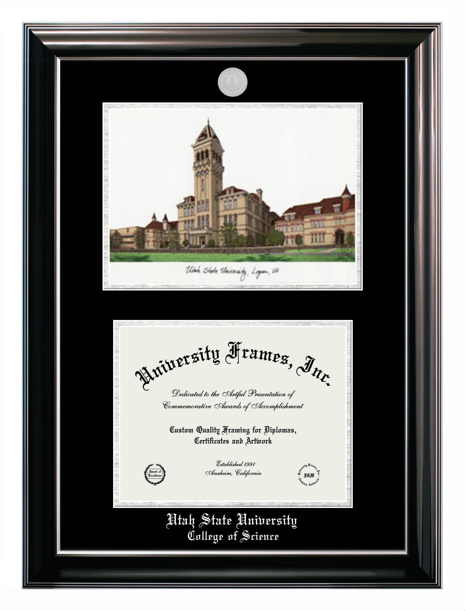 Utah State University College of Science diploma frames and degree frames are the perfect graduation gifts for recent grads, or anyone who wants to preserve and display their hard-earned accomplishments. Our custom diploma frames are specifically made with the official Utah State University College of Science seal and are handcrafted to meet high-quality standards. We guarantee that you will love our graduation frames. Start customizing your frame now!