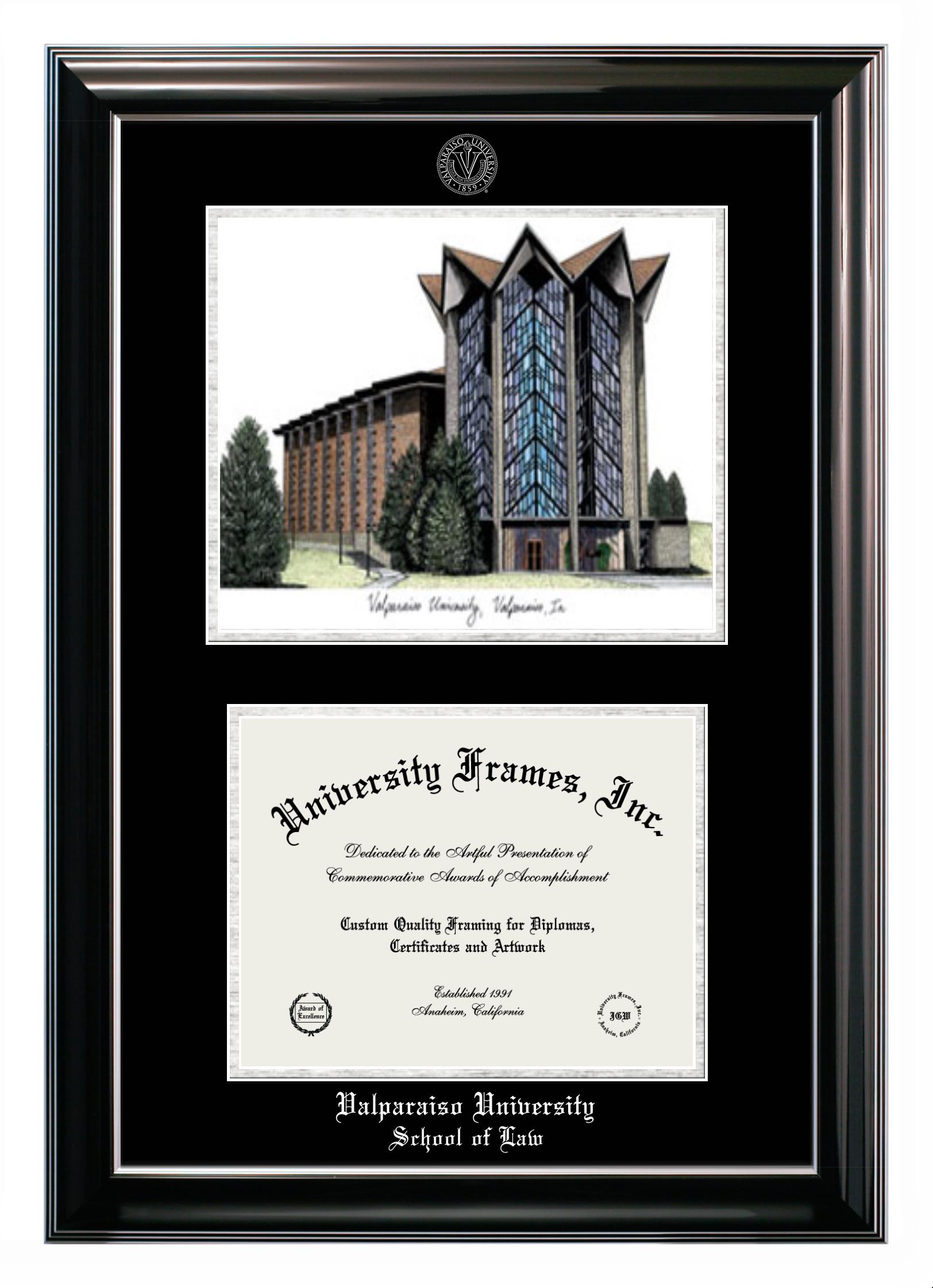 Valparaiso University School of Law diploma frames and degree frames are the perfect graduation gifts for recent grads, or anyone who wants to preserve and display their hard-earned accomplishments. Our custom diploma frames are specifically made with the official Valparaiso University School of Law seal and are handcrafted to meet high-quality standards. We guarantee that you will love our graduation frames. Start customizing your frame now!