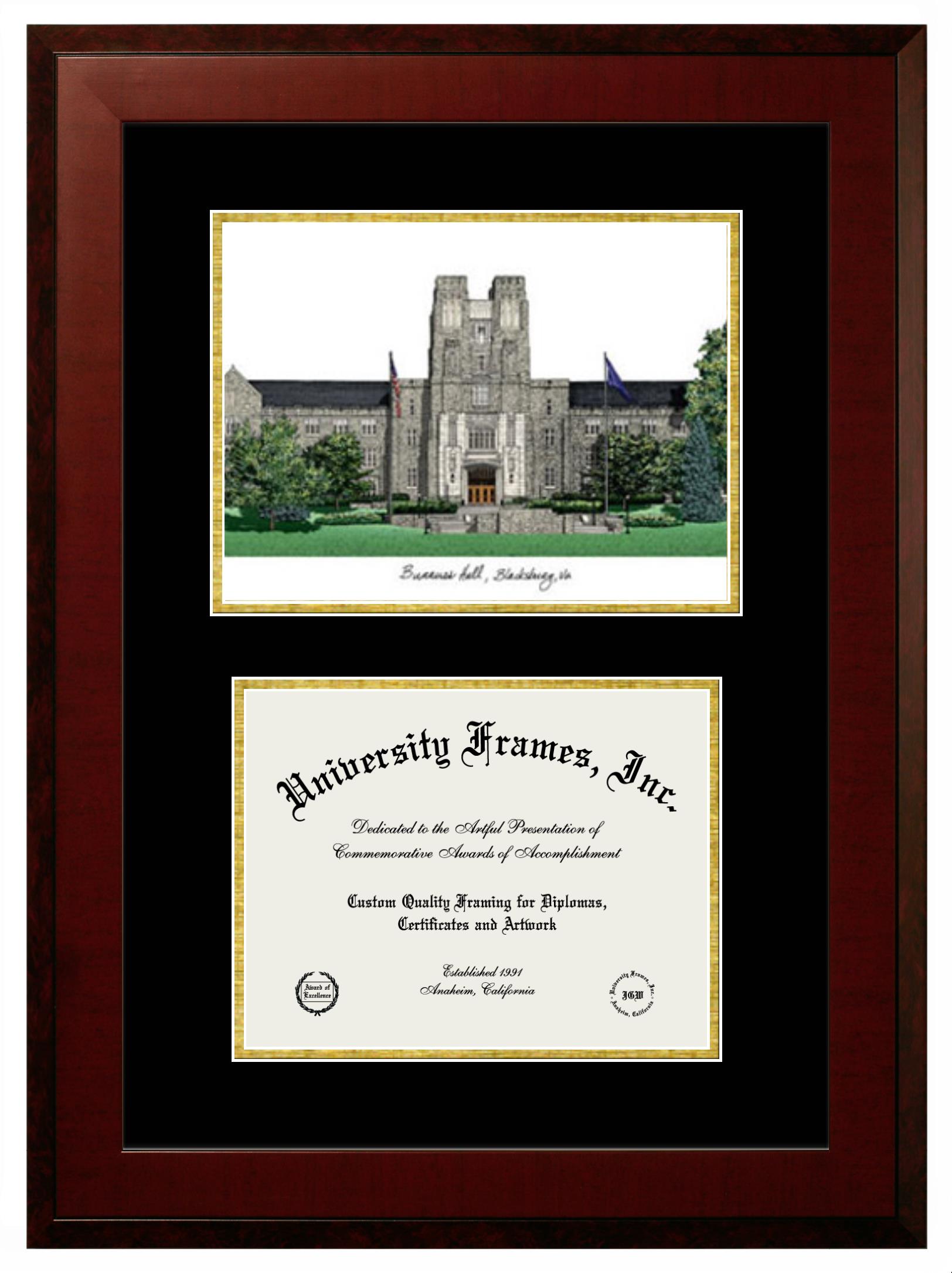 Virginia Polytechnic Institute and State University diploma frames and degree frames are the perfect graduation gifts for recent grads, or anyone who wants to preserve and display their hard-earned accomplishments. Our custom diploma frames are specifically made with the official Virginia Polytechnic Institute and State University seal and are handcrafted to meet high-quality standards. We guarantee that you will love our graduation frames. Start customizing your frame now!
