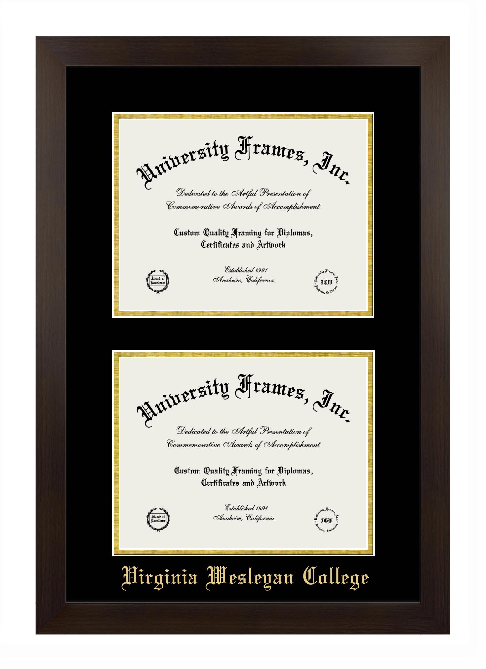 Virginia Wesleyan College diploma frames and degree frames are the perfect graduation gifts for recent grads, or anyone who wants to preserve and display their hard-earned accomplishments. Our custom diploma frames are specifically made with the official Virginia Wesleyan College seal and are handcrafted to meet high-quality standards. We guarantee that you will love our graduation frames. Start customizing your frame now!