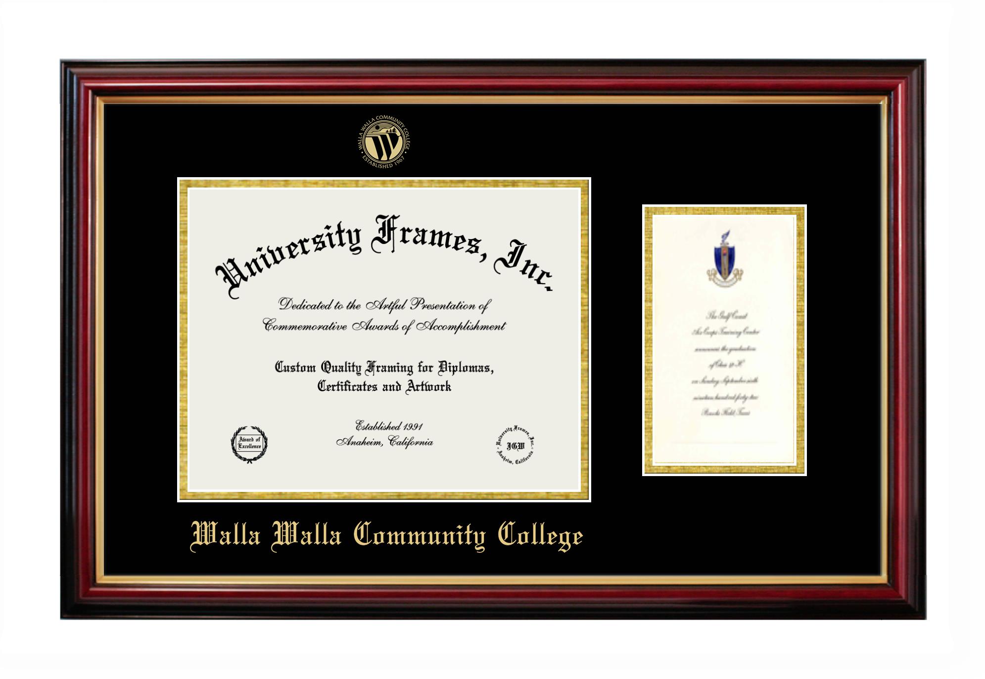 Walla Walla Community College diploma frames and degree frames are the perfect graduation gifts for recent grads, or anyone who wants to preserve and display their hard-earned accomplishments. Our custom diploma frames are specifically made with the official Walla Walla Community College seal and are handcrafted to meet high-quality standards. We guarantee that you will love our graduation frames. Start customizing your frame now!