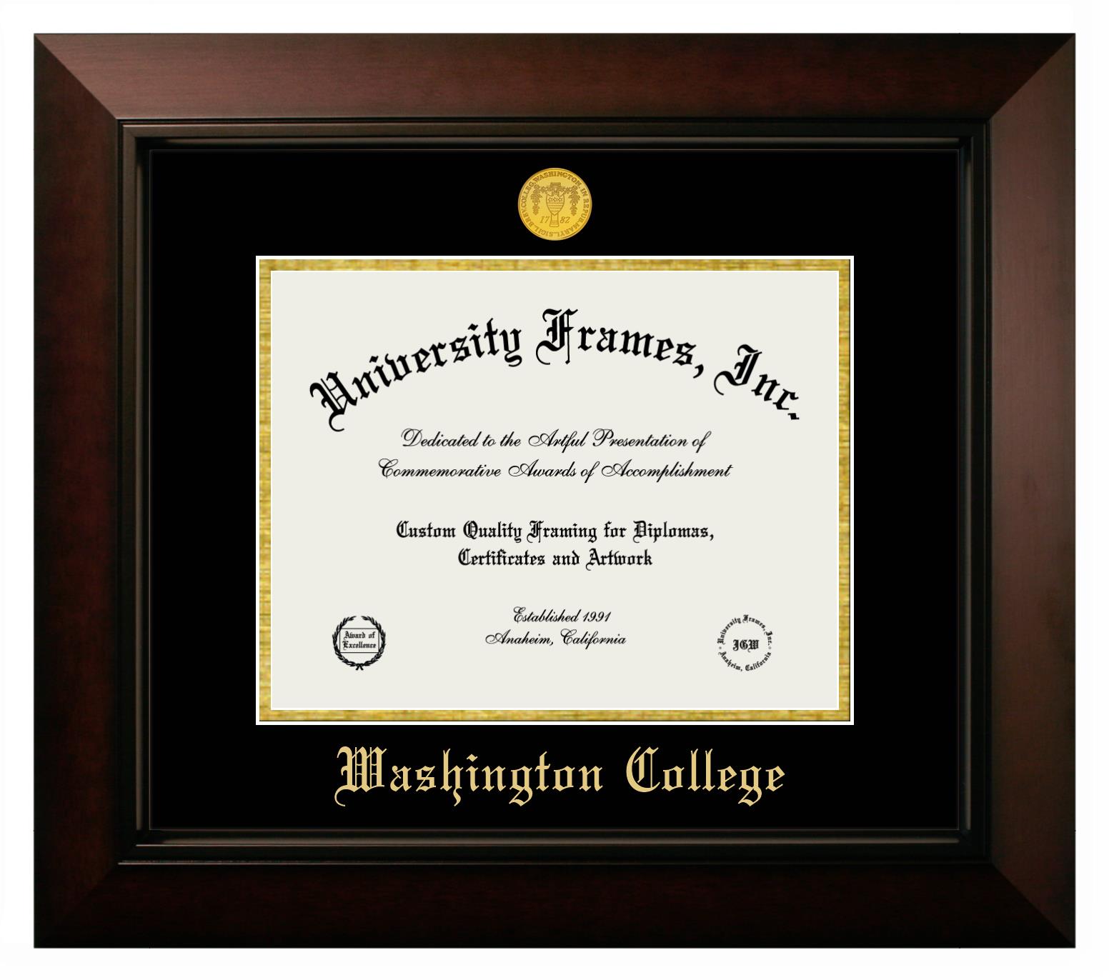 Washington College diploma frames and degree frames are the perfect graduation gifts for recent grads, or anyone who wants to preserve and display their hard-earned accomplishments. Our custom diploma frames are specifically made with the official Washington College seal and are handcrafted to meet high-quality standards. We guarantee that you will love our graduation frames. Start customizing your frame now!