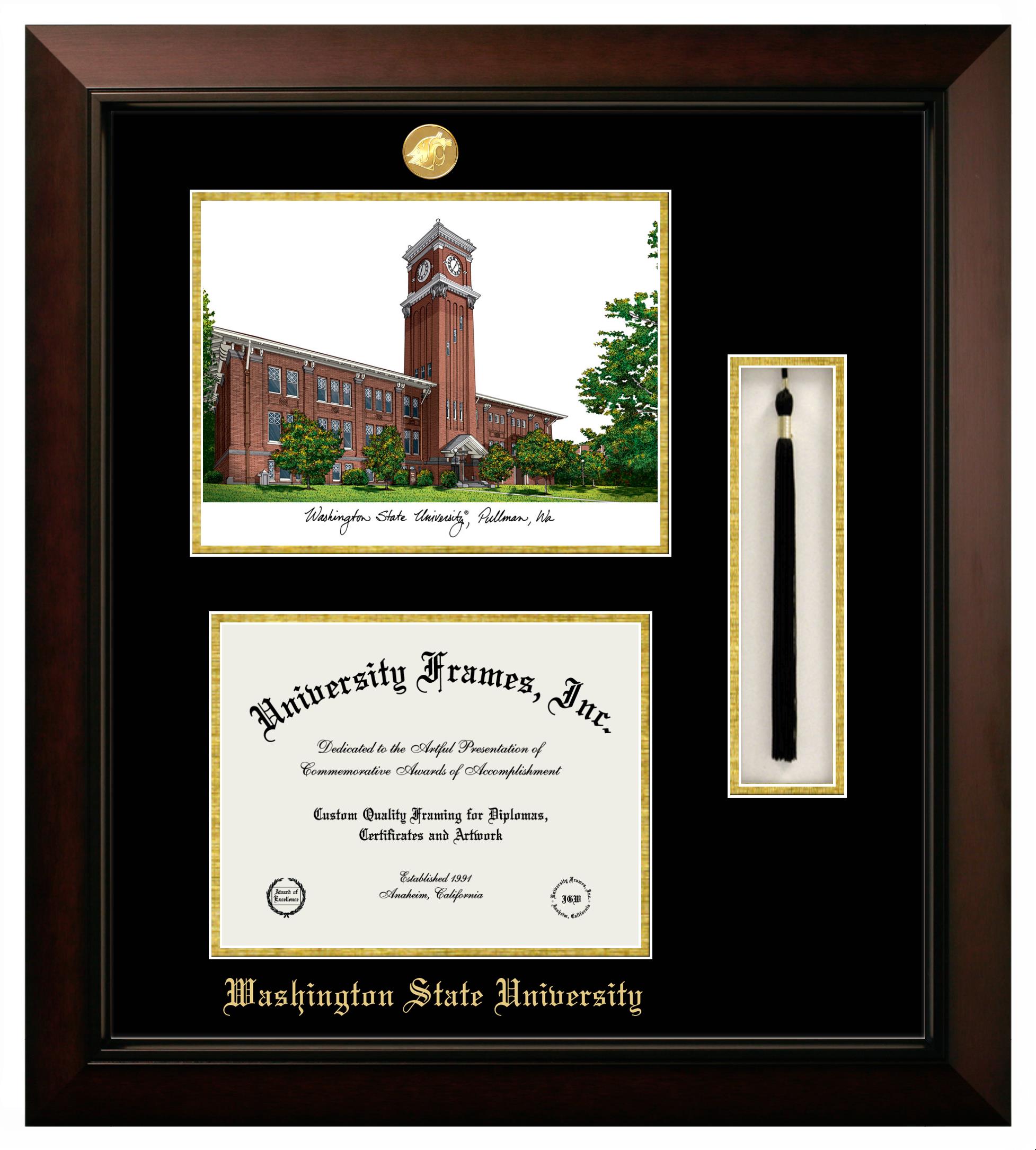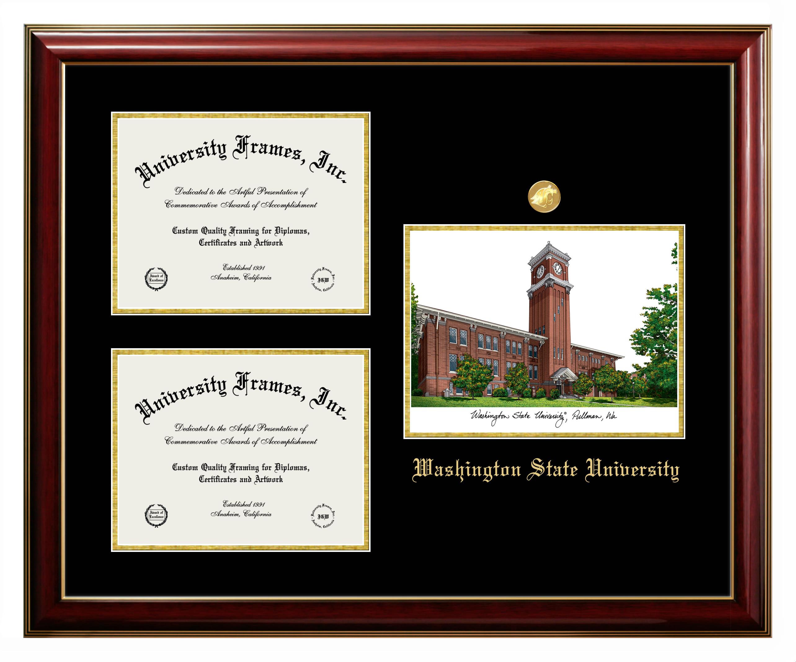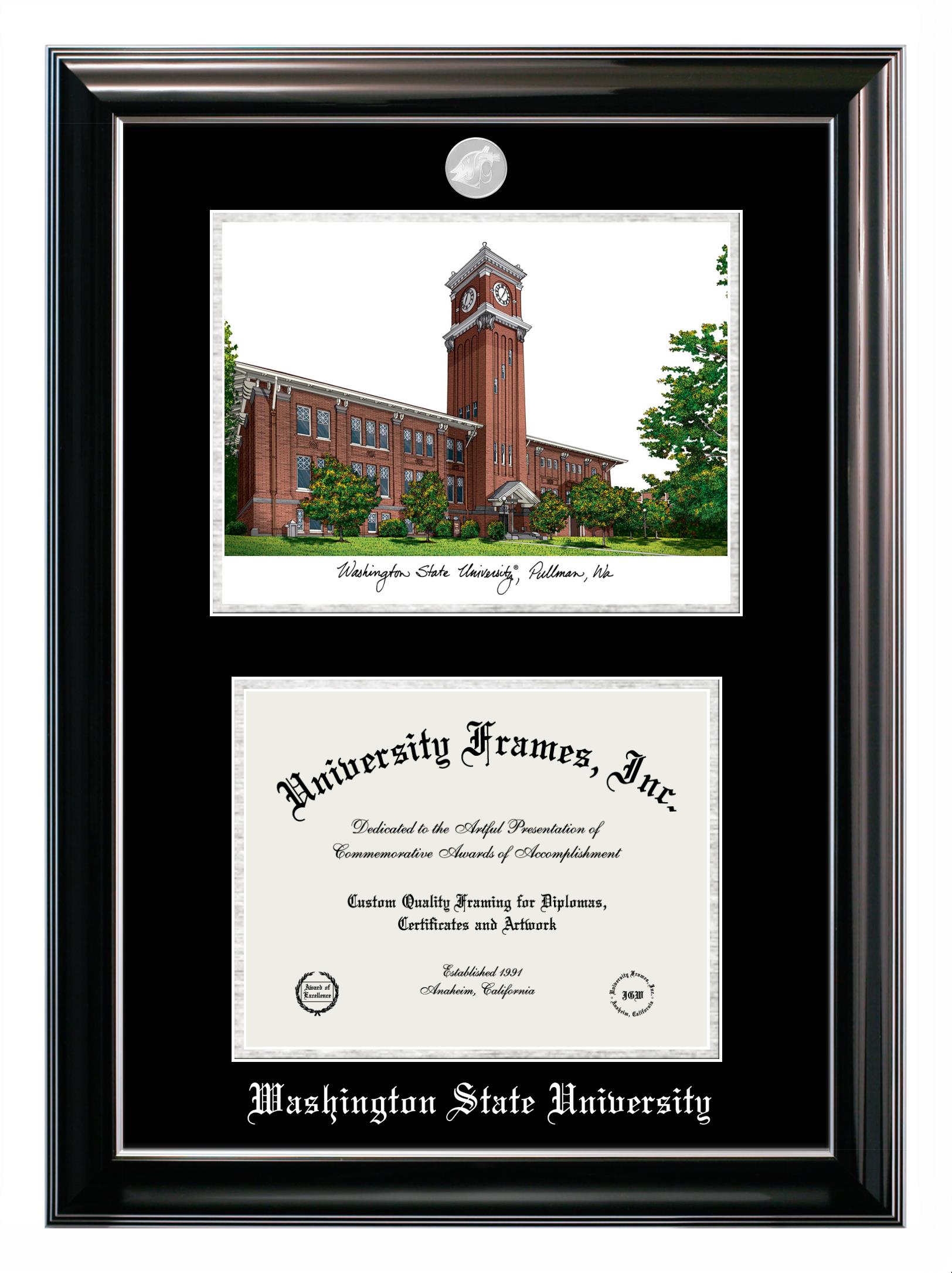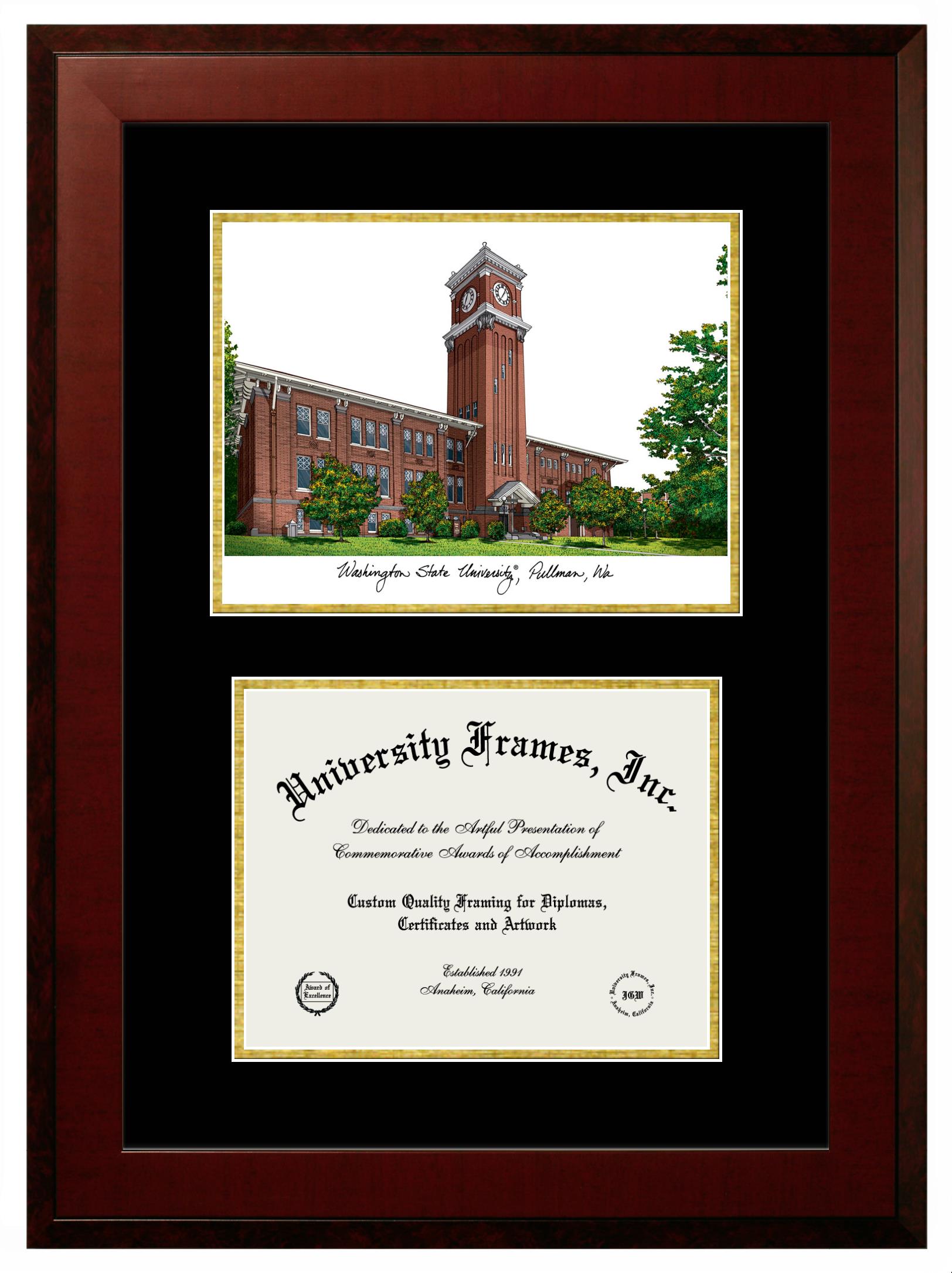 Washington State University diploma frames and degree frames are the perfect graduation gifts for recent grads, or anyone who wants to preserve and display their hard-earned accomplishments. Our custom diploma frames are specifically made with the official Washington State University seal and are handcrafted to meet high-quality standards. We guarantee that you will love our graduation frames. Start customizing your frame now!