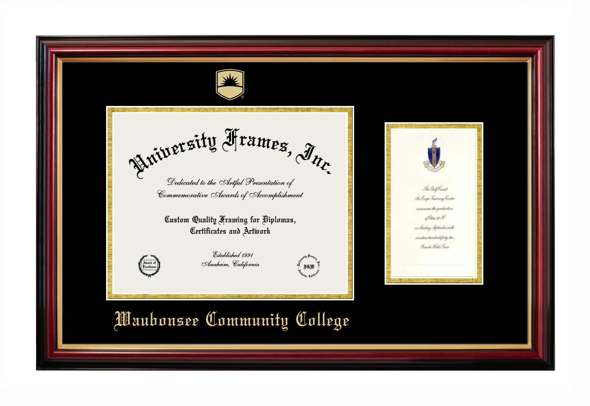 Waubonsee Community College diploma frames and degree frames are the perfect graduation gifts for recent grads, or anyone who wants to preserve and display their hard-earned accomplishments. Our custom diploma frames are specifically made with the official Waubonsee Community College seal and are handcrafted to meet high-quality standards. We guarantee that you will love our graduation frames. Start customizing your frame now!