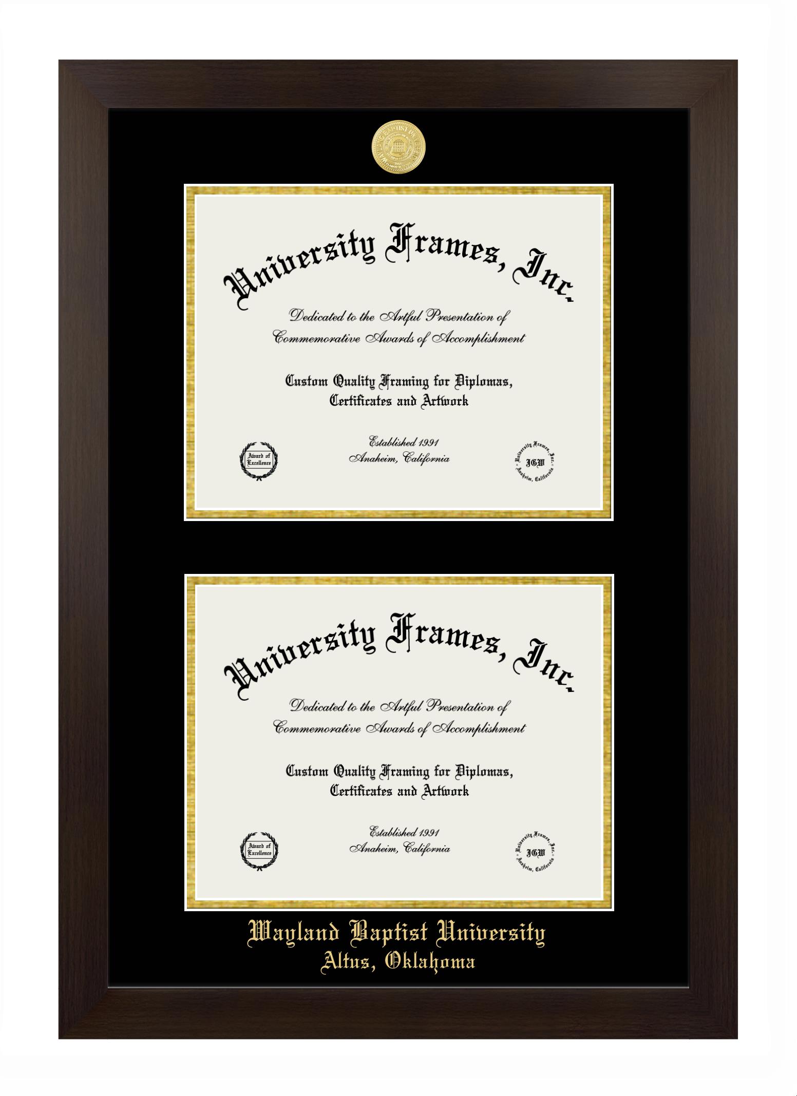Wayland Baptist University Altus, Oklahoma diploma frames and degree frames are the perfect graduation gifts for recent grads, or anyone who wants to preserve and display their hard-earned accomplishments. Our custom diploma frames are specifically made with the official Wayland Baptist University Altus, Oklahoma seal and are handcrafted to meet high-quality standards. We guarantee that you will love our graduation frames. Start customizing your frame now!