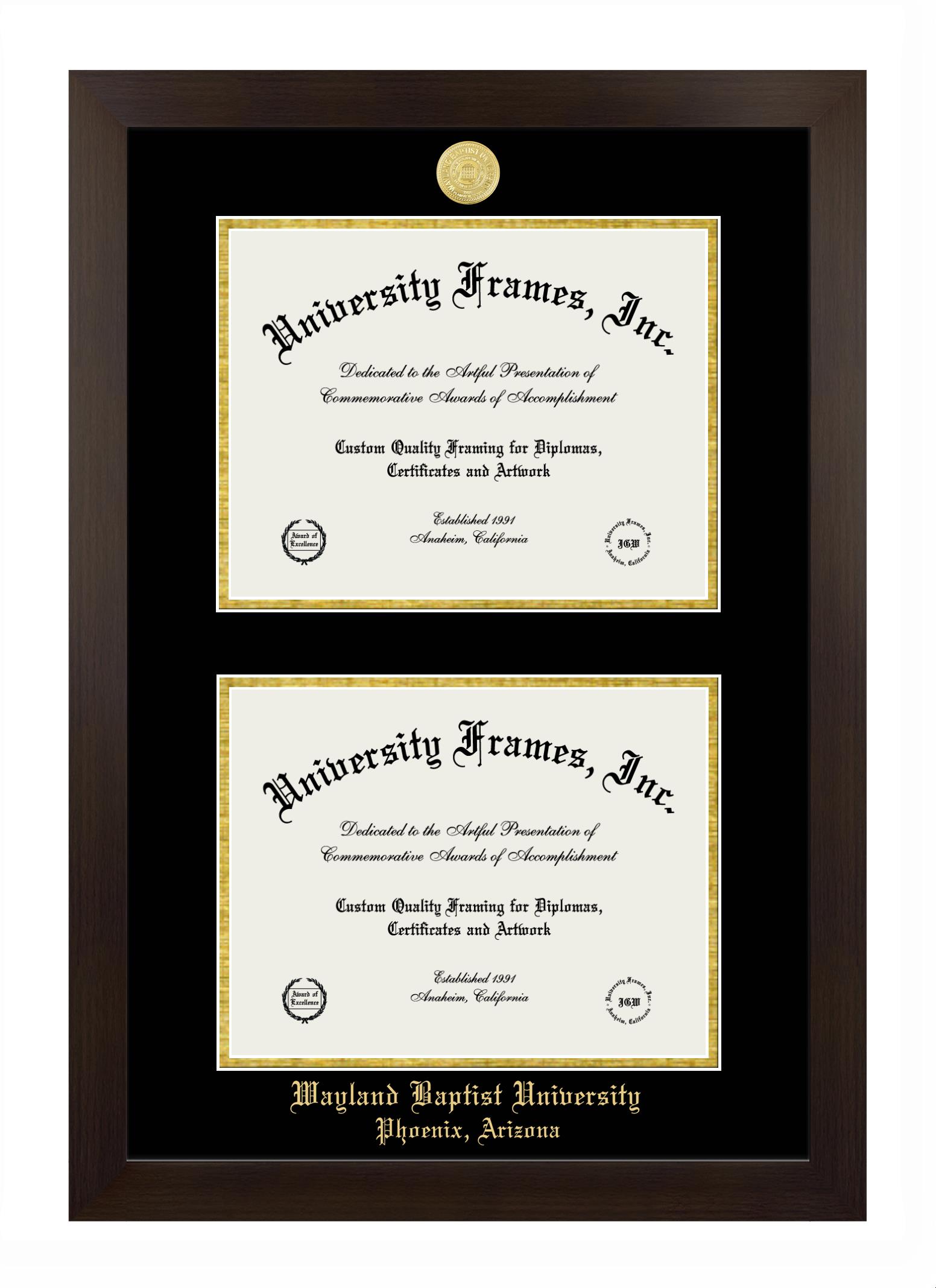 Wayland Baptist University Phoenix, Arizona diploma frames and degree frames are the perfect graduation gifts for recent grads, or anyone who wants to preserve and display their hard-earned accomplishments. Our custom diploma frames are specifically made with the official Wayland Baptist University Phoenix, Arizona seal and are handcrafted to meet high-quality standards. We guarantee that you will love our graduation frames. Start customizing your frame now!