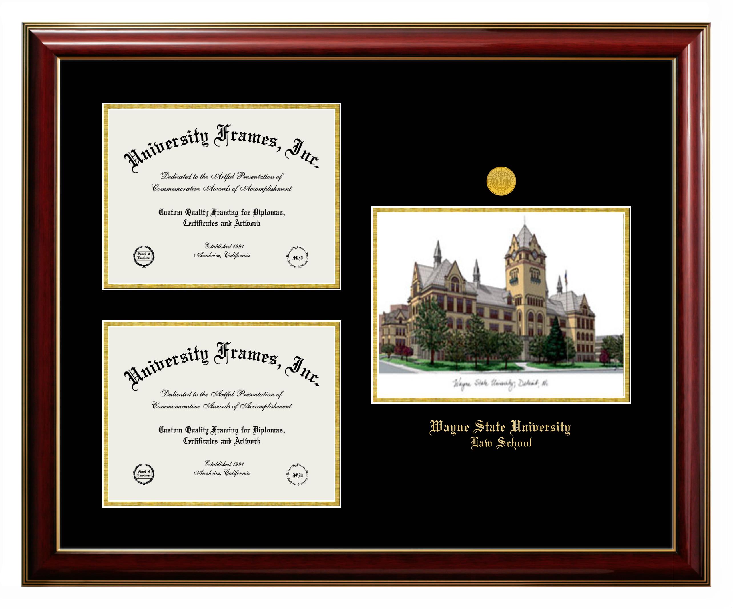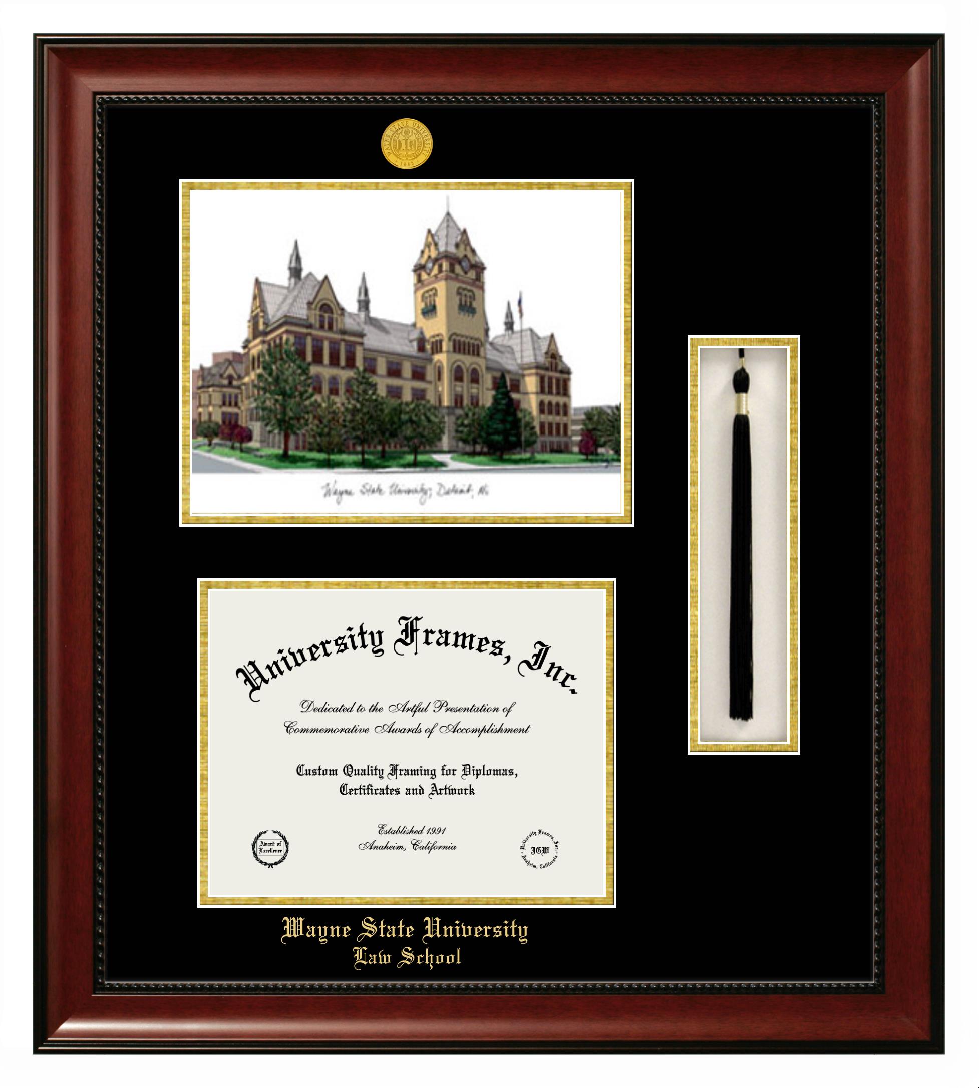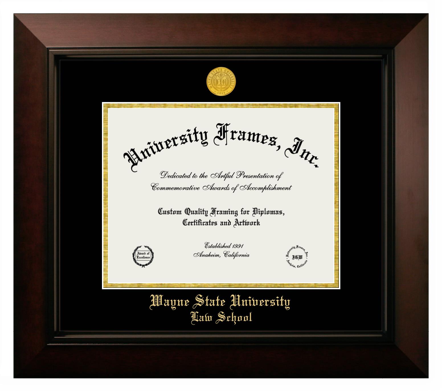 Wayne State University Law School diploma frames and degree frames are the perfect graduation gifts for recent grads, or anyone who wants to preserve and display their hard-earned accomplishments. Our custom diploma frames are specifically made with the official Wayne State University Law School seal and are handcrafted to meet high-quality standards. We guarantee that you will love our graduation frames. Start customizing your frame now!
