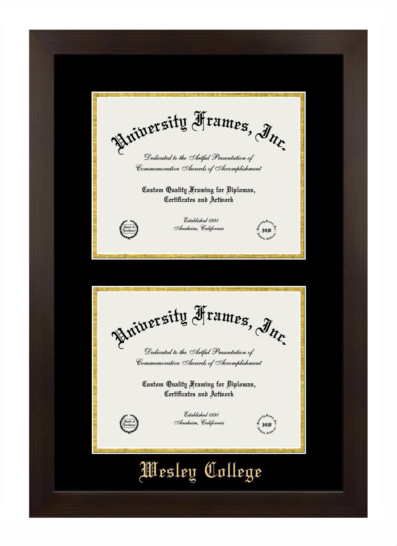 Wesley College (Delaware) diploma frames and degree frames are the perfect graduation gifts for recent grads, or anyone who wants to preserve and display their hard-earned accomplishments. Our custom diploma frames are specifically made with the official Wesley College (Delaware) seal and are handcrafted to meet high-quality standards. We guarantee that you will love our graduation frames. Start customizing your frame now!