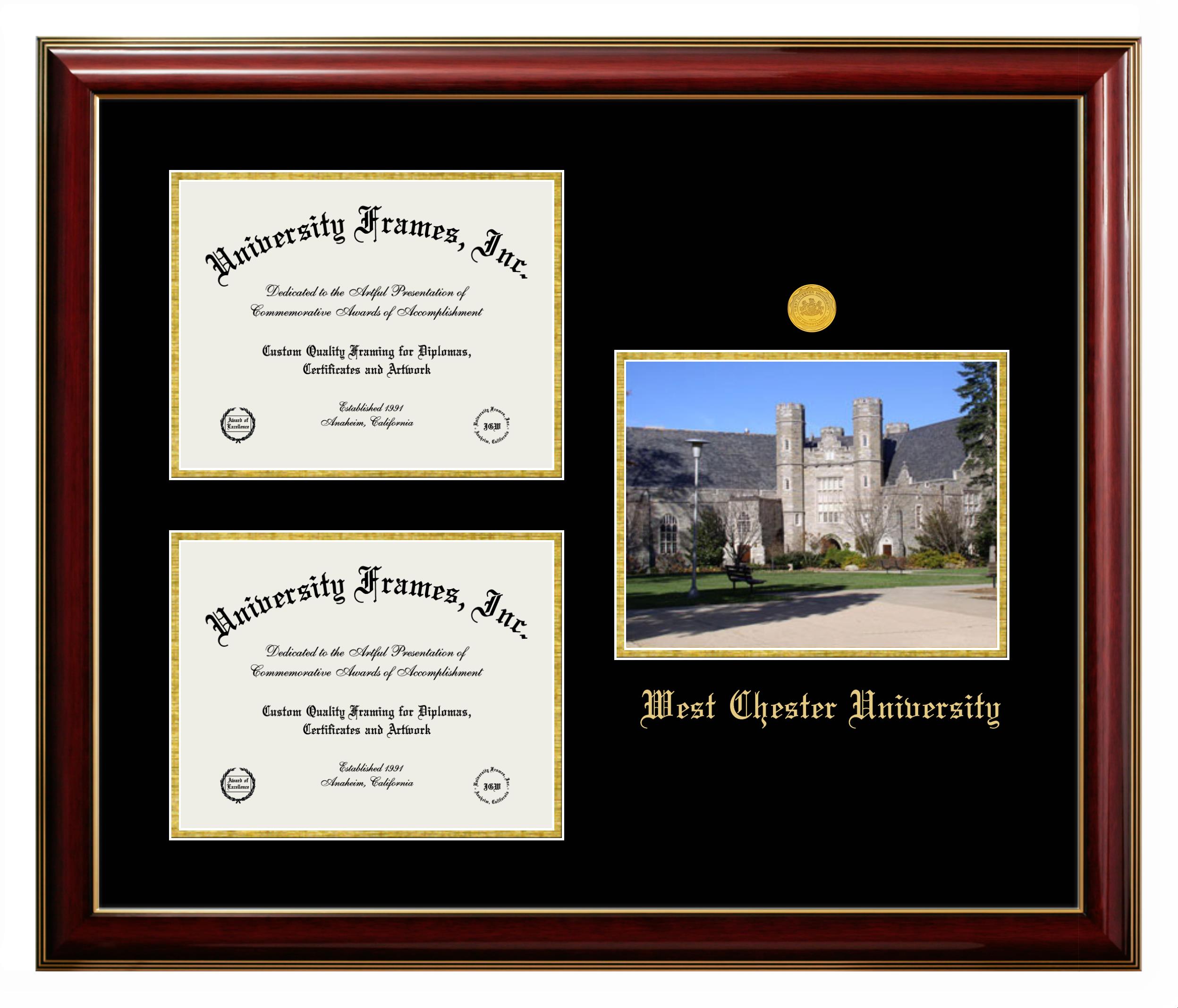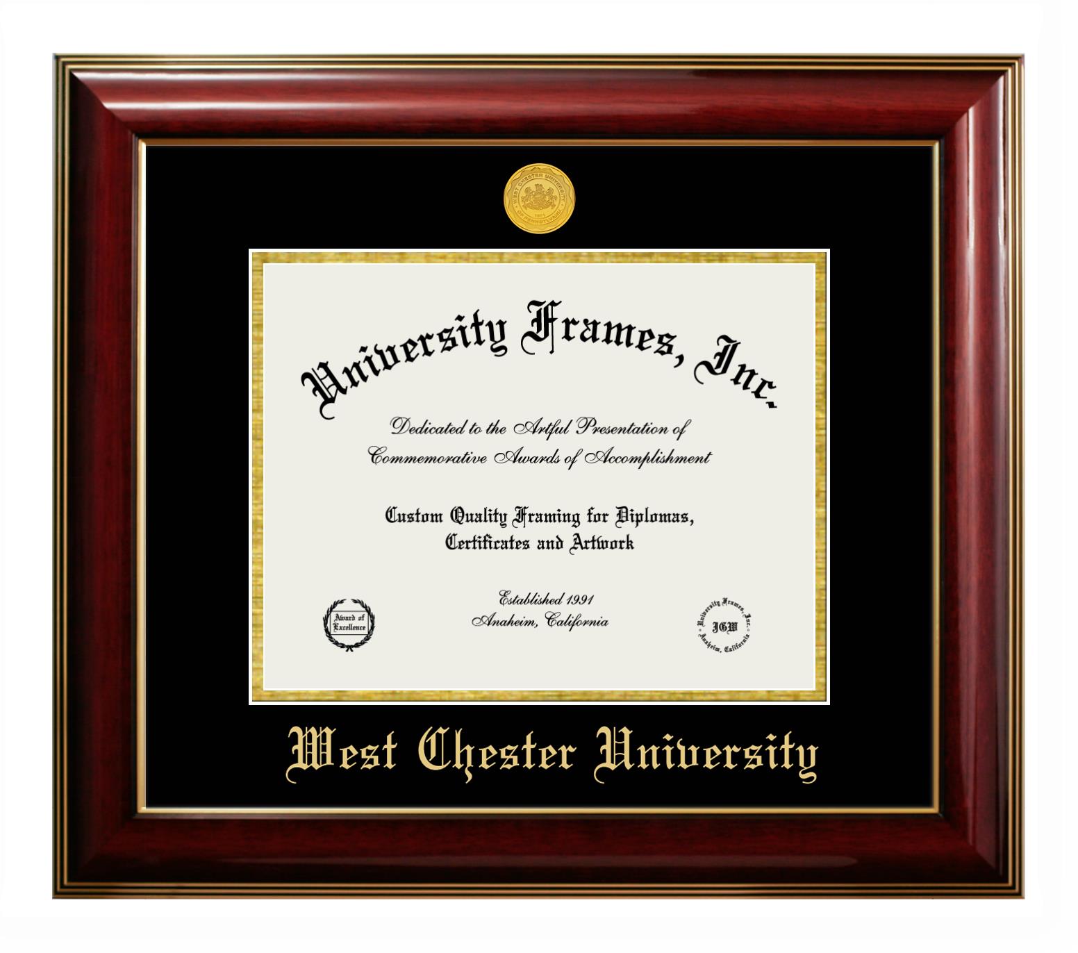 West Chester University diploma frames and degree frames are the perfect graduation gifts for recent grads, or anyone who wants to preserve and display their hard-earned accomplishments. Our custom diploma frames are specifically made with the official West Chester University seal and are handcrafted to meet high-quality standards. We guarantee that you will love our graduation frames. Start customizing your frame now!
