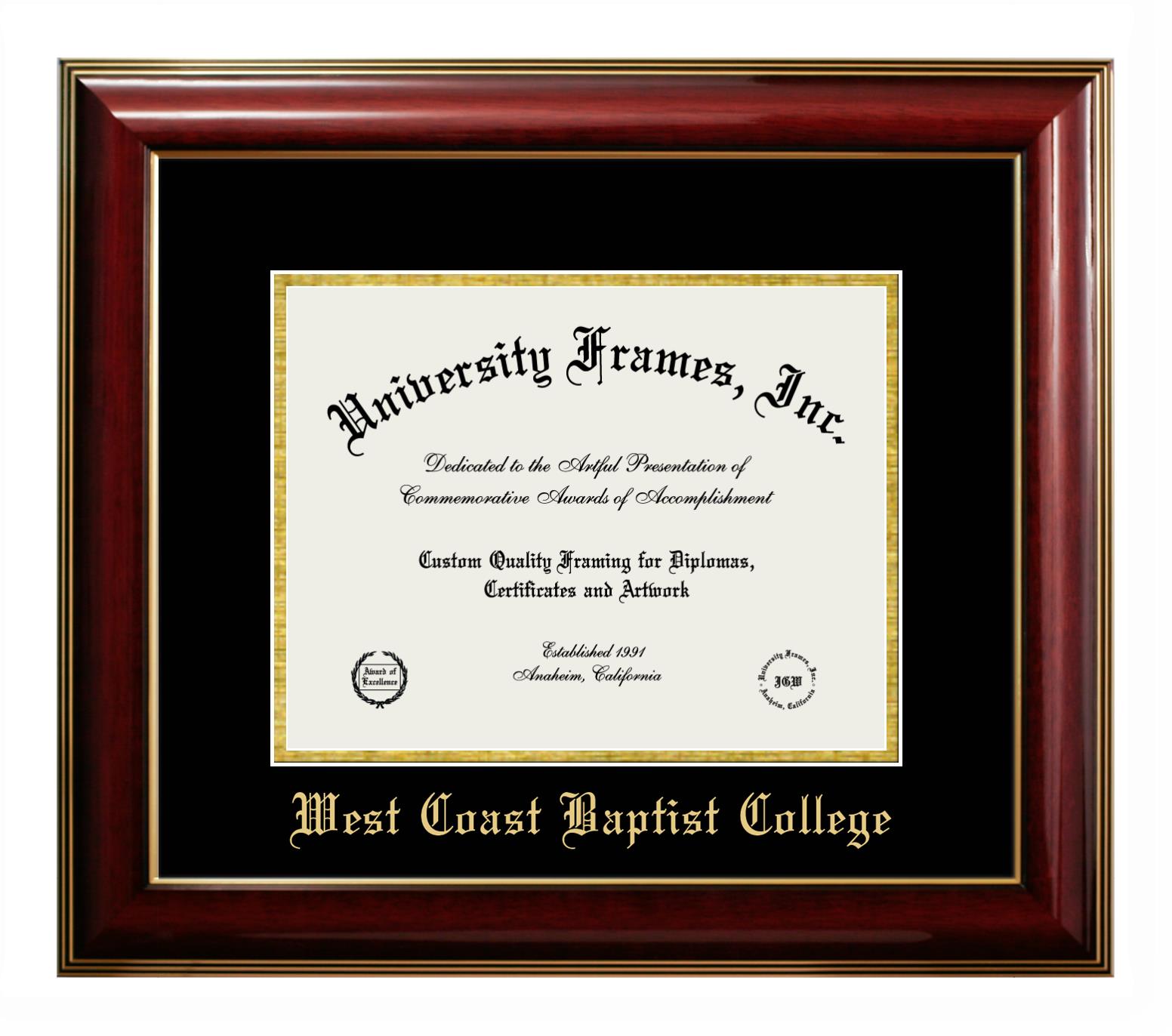 West Coast Baptist College diploma frames and degree frames are the perfect graduation gifts for recent grads, or anyone who wants to preserve and display their hard-earned accomplishments. Our custom diploma frames are specifically made with the official West Coast Baptist College seal and are handcrafted to meet high-quality standards. We guarantee that you will love our graduation frames. Start customizing your frame now!