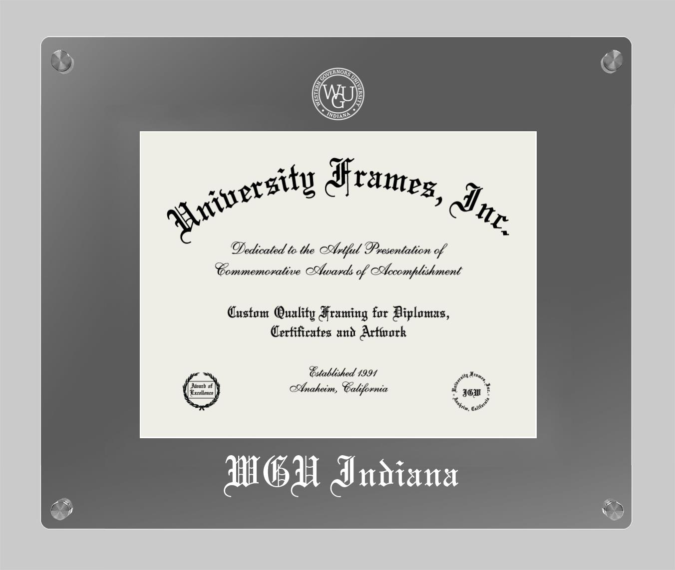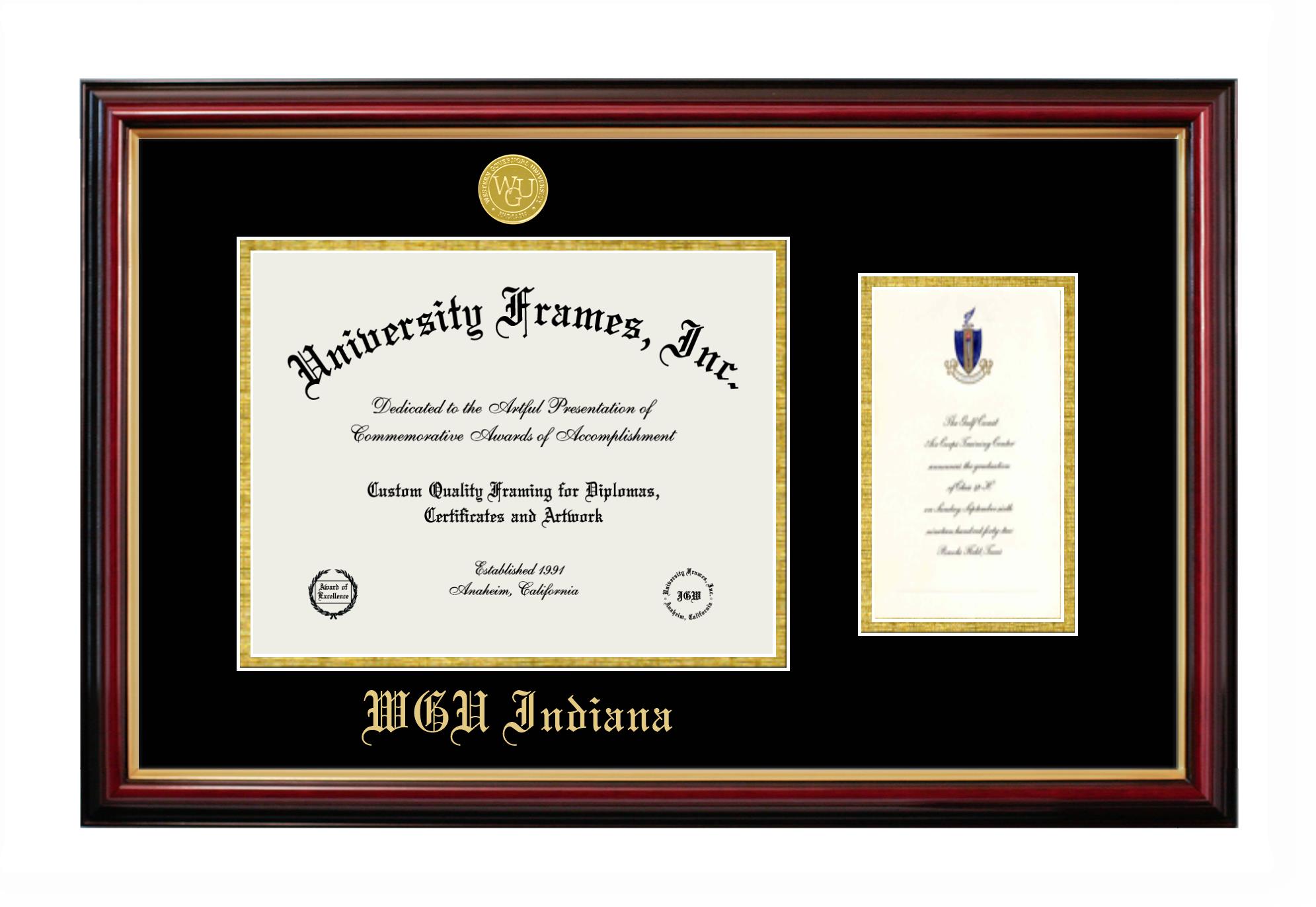Western Governors University (Indiana) diploma frames and degree frames are the perfect graduation gifts for recent grads, or anyone who wants to preserve and display their hard-earned accomplishments. Our custom diploma frames are specifically made with the official Western Governors University (Indiana) seal and are handcrafted to meet high-quality standards. We guarantee that you will love our graduation frames. Start customizing your frame now!