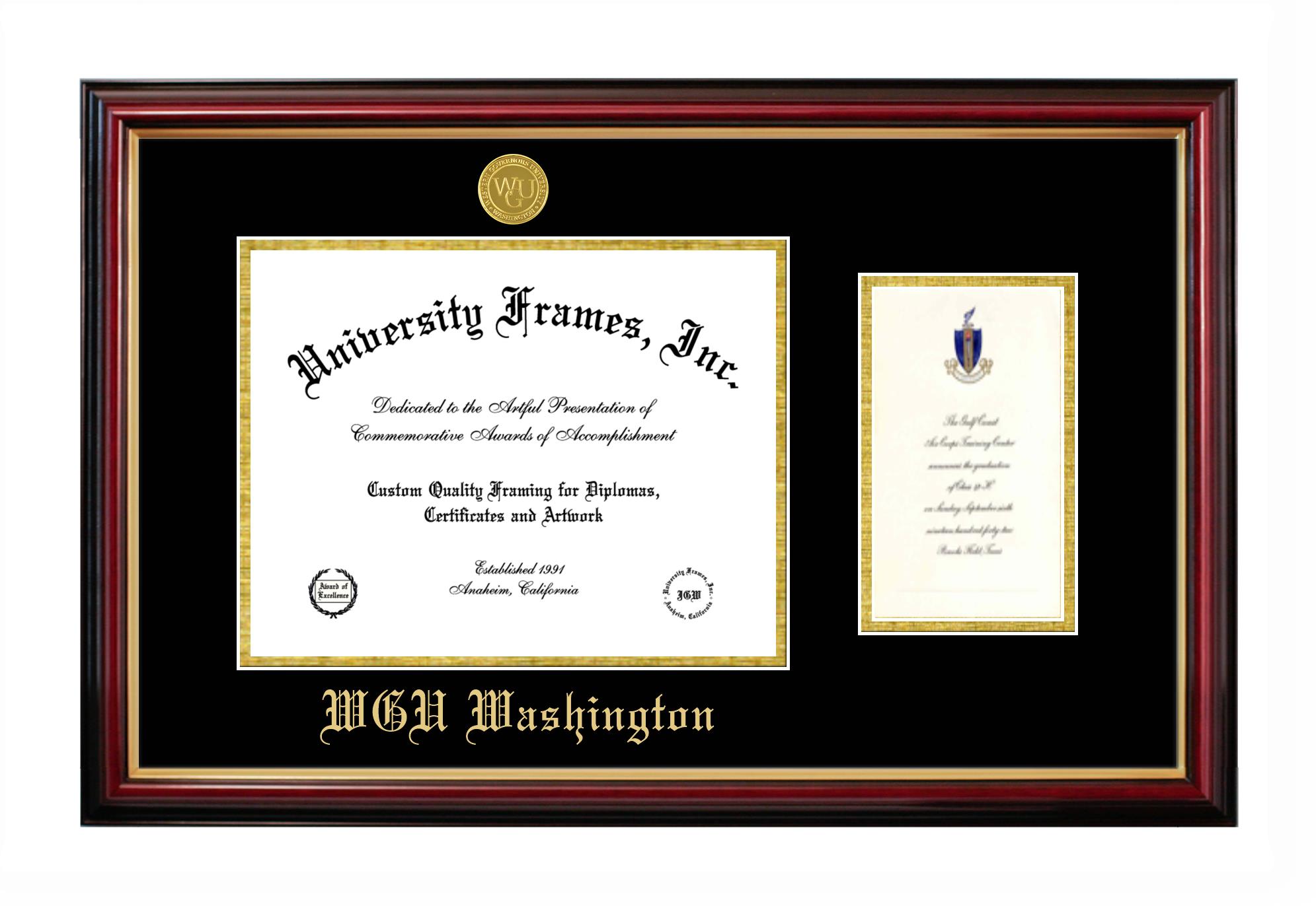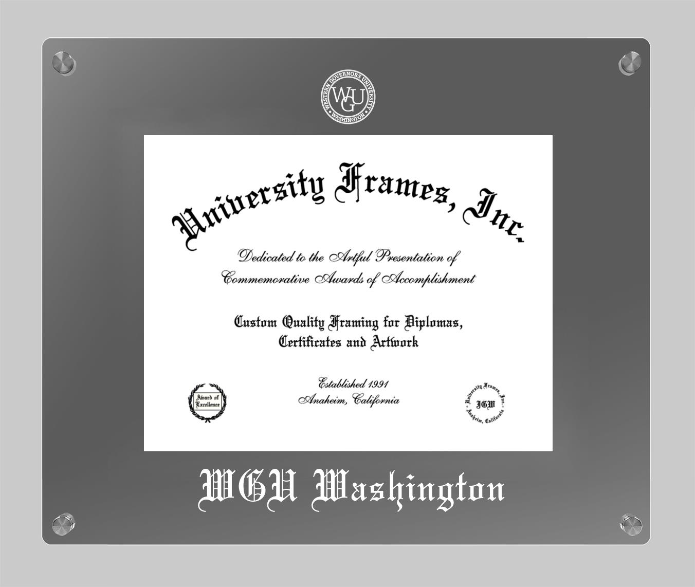 Western Governors University (Washington) diploma frames and degree frames are the perfect graduation gifts for recent grads, or anyone who wants to preserve and display their hard-earned accomplishments. Our custom diploma frames are specifically made with the official Western Governors University (Washington) seal and are handcrafted to meet high-quality standards. We guarantee that you will love our graduation frames. Start customizing your frame now!
