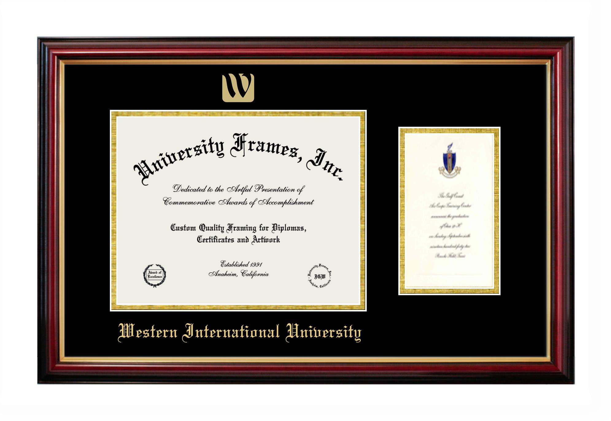 Western International University diploma frames and degree frames are the perfect graduation gifts for recent grads, or anyone who wants to preserve and display their hard-earned accomplishments. Our custom diploma frames are specifically made with the official Western International University seal and are handcrafted to meet high-quality standards. We guarantee that you will love our graduation frames. Start customizing your frame now!
