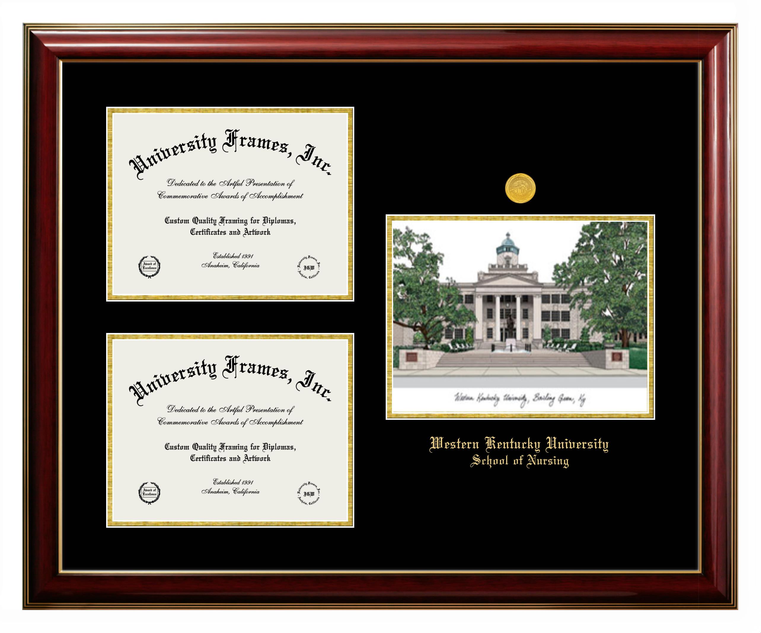 Western Kentucky University School of Nursing diploma frames and degree frames are the perfect graduation gifts for recent grads, or anyone who wants to preserve and display their hard-earned accomplishments. Our custom diploma frames are specifically made with the official Western Kentucky University School of Nursing seal and are handcrafted to meet high-quality standards. We guarantee that you will love our graduation frames. Start customizing your frame now!
