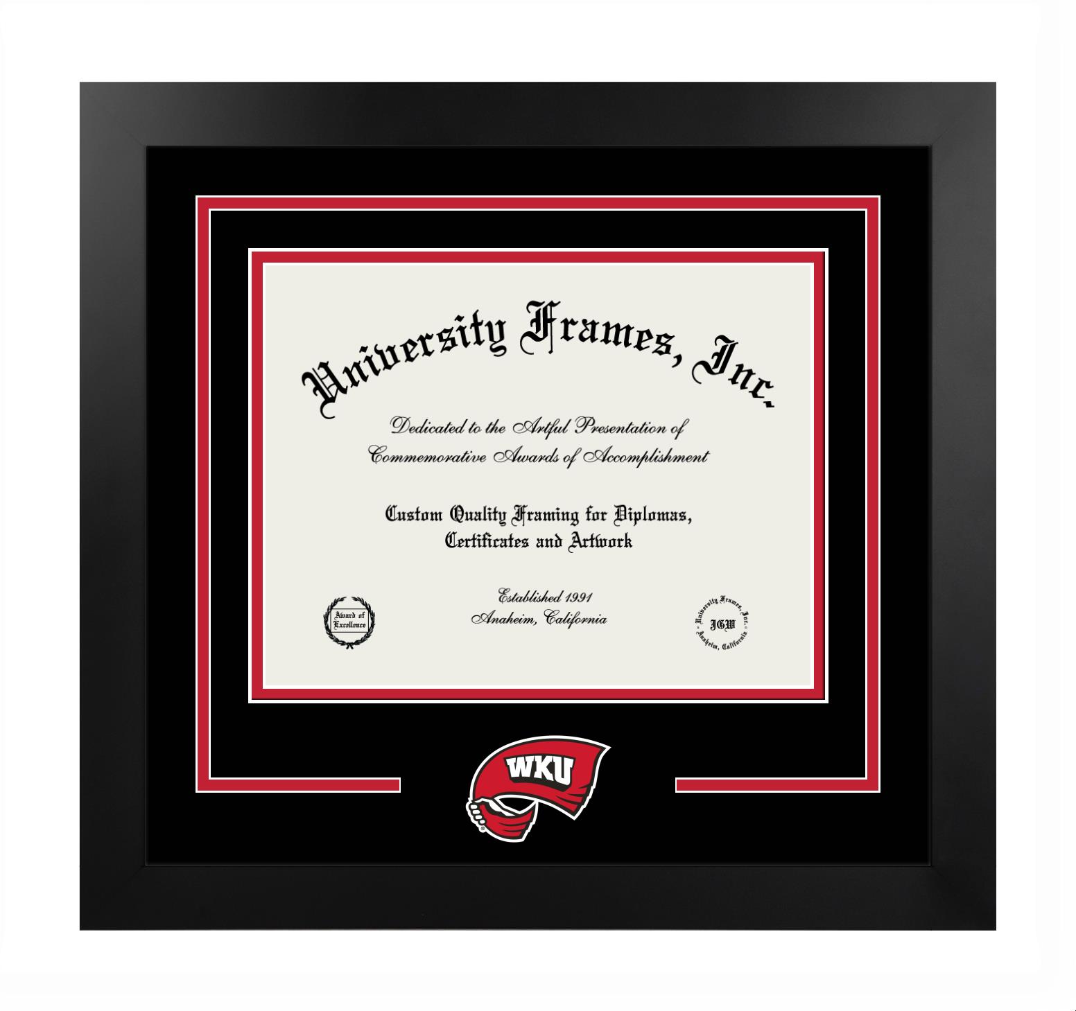 Western Kentucky University diploma frames and degree frames are the perfect graduation gifts for recent grads, or anyone who wants to preserve and display their hard-earned accomplishments. Our custom diploma frames are specifically made with the official Western Kentucky University seal and are handcrafted to meet high-quality standards. We guarantee that you will love our graduation frames. Start customizing your frame now!
