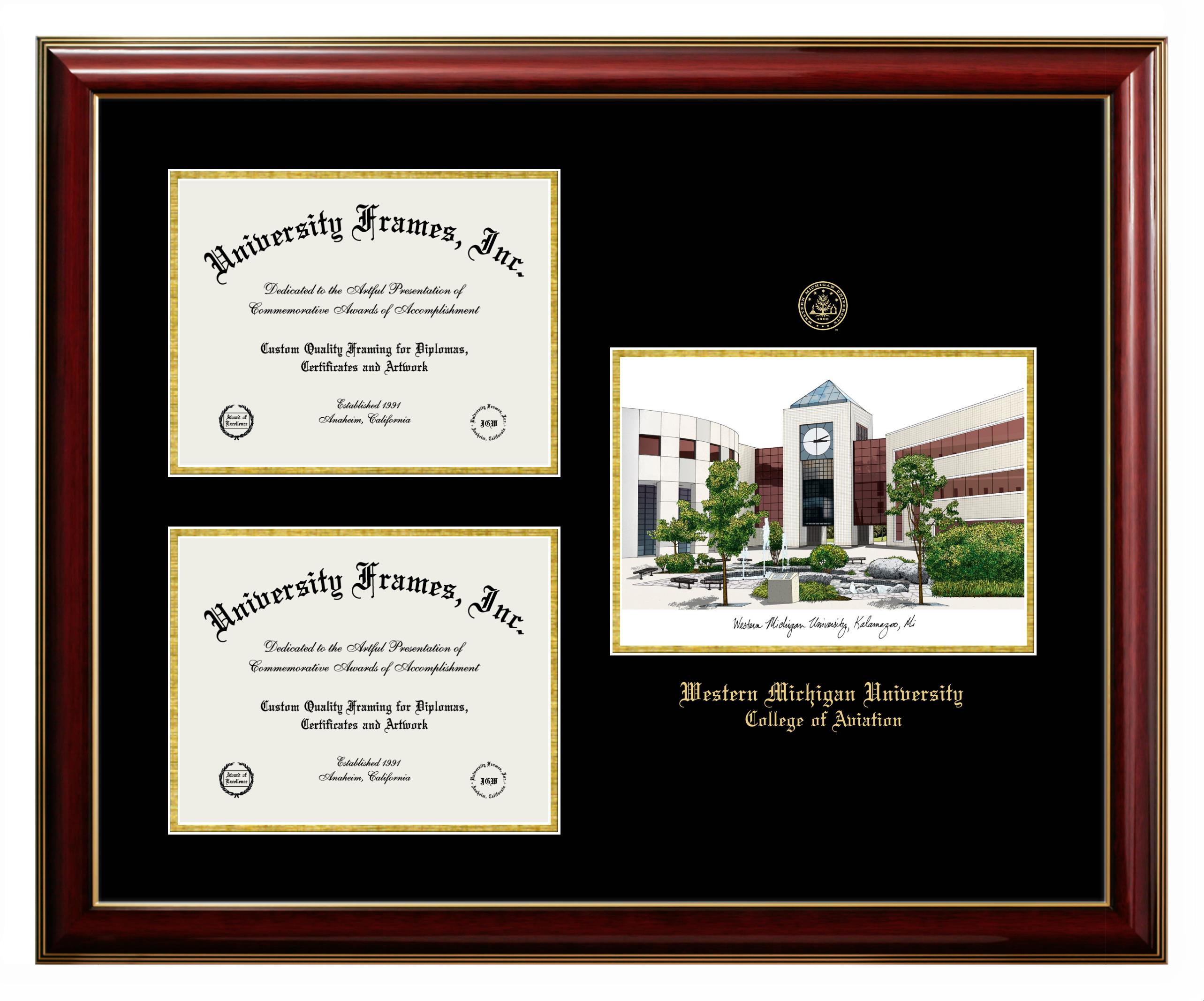 Western Michigan University College of Aviaton diploma frames and degree frames are the perfect graduation gifts for recent grads, or anyone who wants to preserve and display their hard-earned accomplishments. Our custom diploma frames are specifically made with the official Western Michigan University College of Aviaton seal and are handcrafted to meet high-quality standards. We guarantee that you will love our graduation frames. Start customizing your frame now!