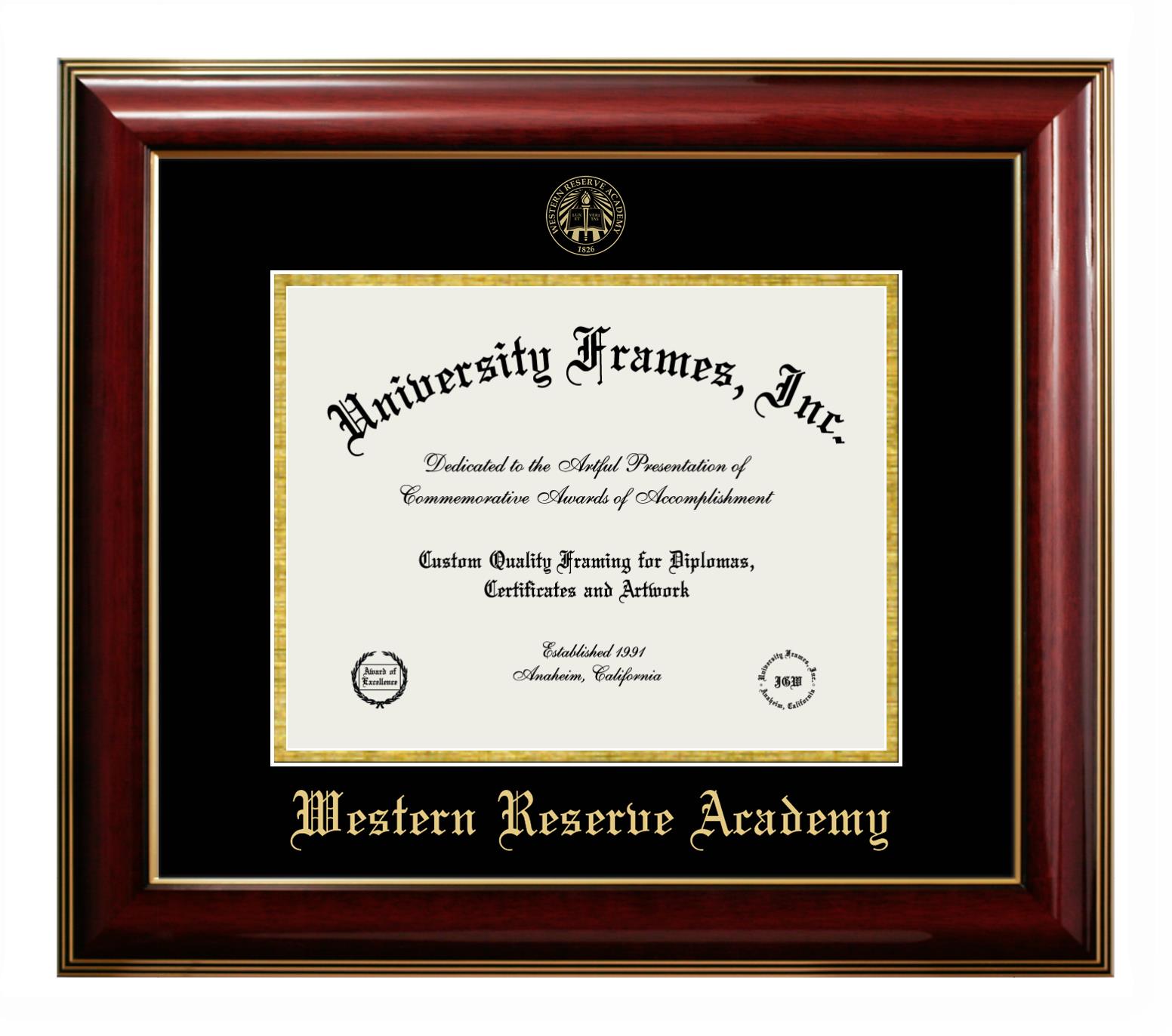 Western Reserve Academy diploma frames and degree frames are the perfect graduation gifts for recent grads, or anyone who wants to preserve and display their hard-earned accomplishments. Our custom diploma frames are specifically made with the official Western Reserve Academy seal and are handcrafted to meet high-quality standards. We guarantee that you will love our graduation frames. Start customizing your frame now!