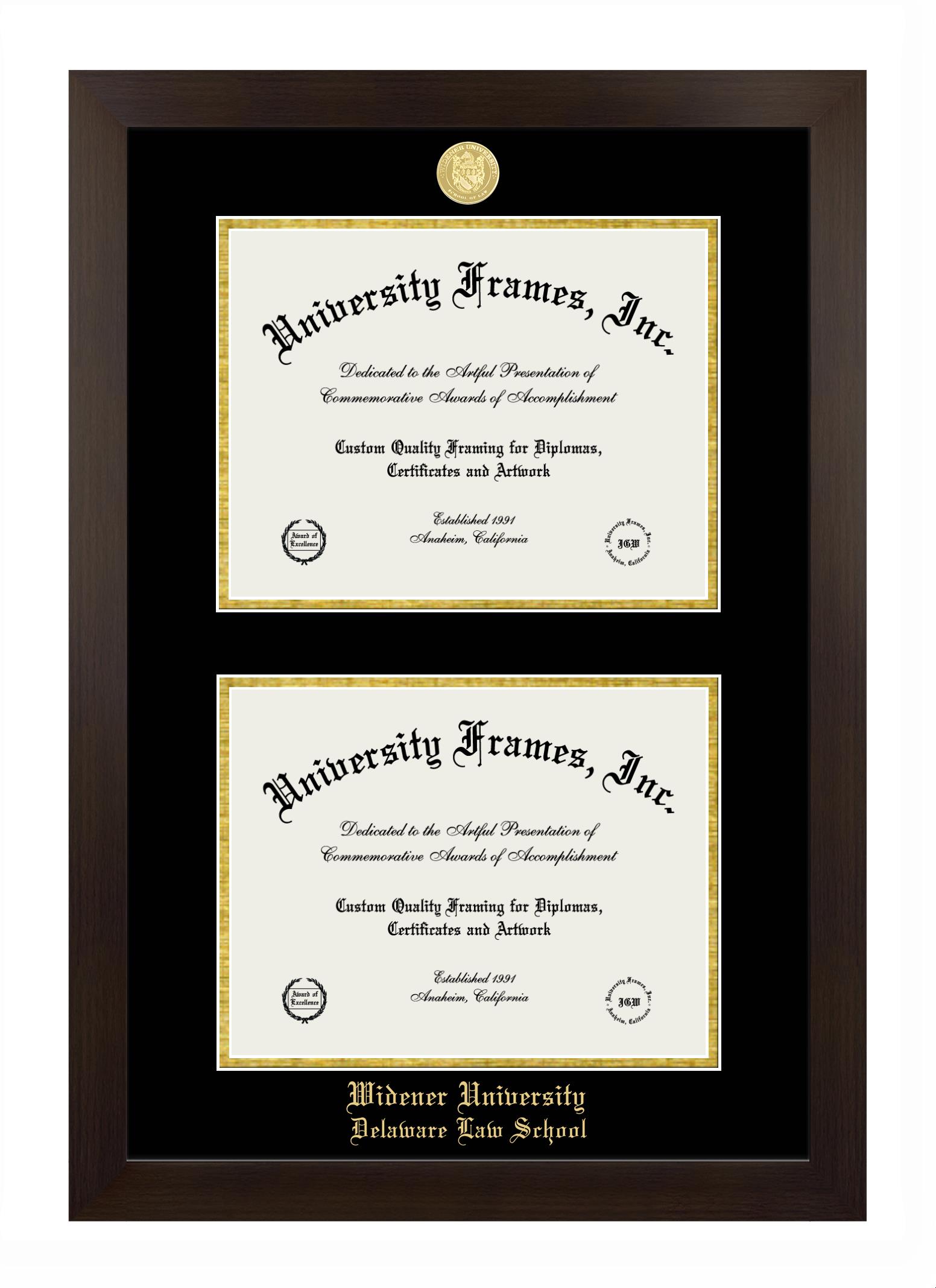 Widener University Delaware Law School diploma frames and degree frames are the perfect graduation gifts for recent grads, or anyone who wants to preserve and display their hard-earned accomplishments. Our custom diploma frames are specifically made with the official Widener University Delaware Law School seal and are handcrafted to meet high-quality standards. We guarantee that you will love our graduation frames. Start customizing your frame now!