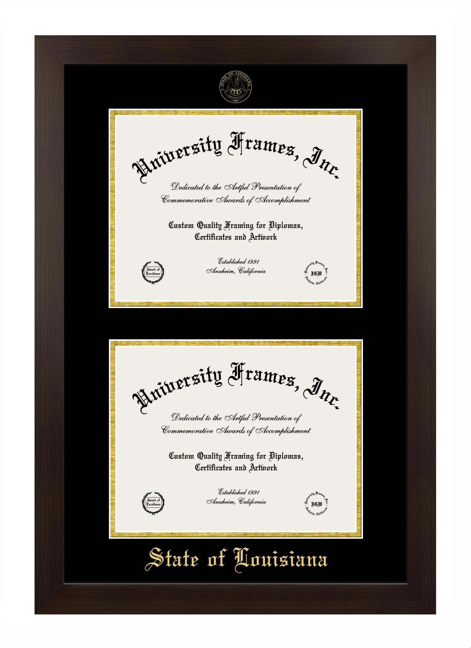 Absolutely! Our dual degree frames can feature official university seals, logos, or emblems for most colleges and universities. If your degrees are from two different schools, we can include both seals in your dual diploma frame design for a personalized touch.